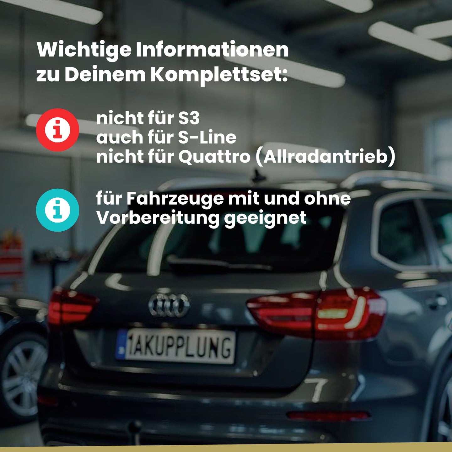 Nicht für S3. Auch für S-Line. Nicht für Quattro (Allradantrieb).