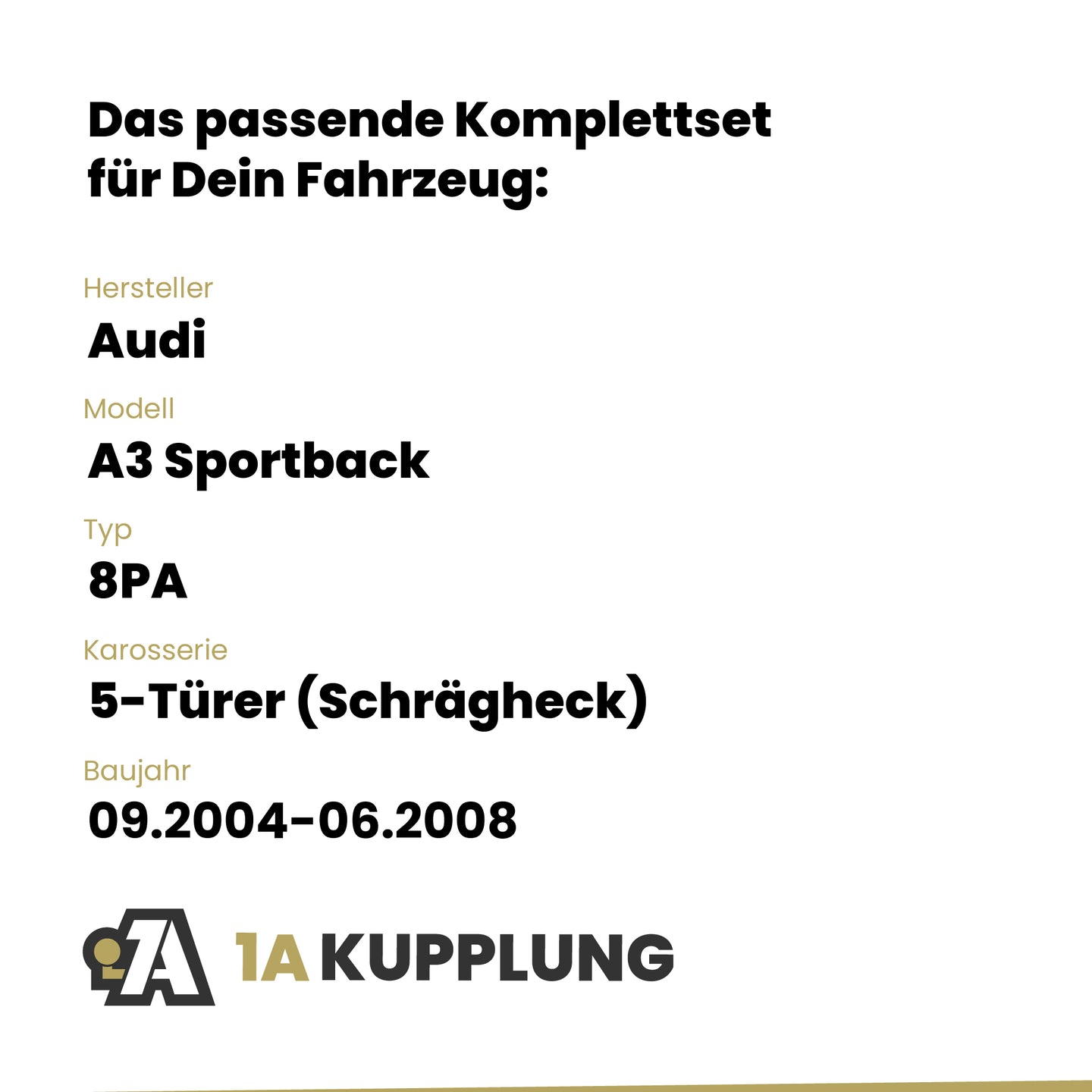 Passt zu Audi A3 Sportback 5-Türer (Schrägheck), Baujahr 09.2004-06.2008, Typ: 8PA