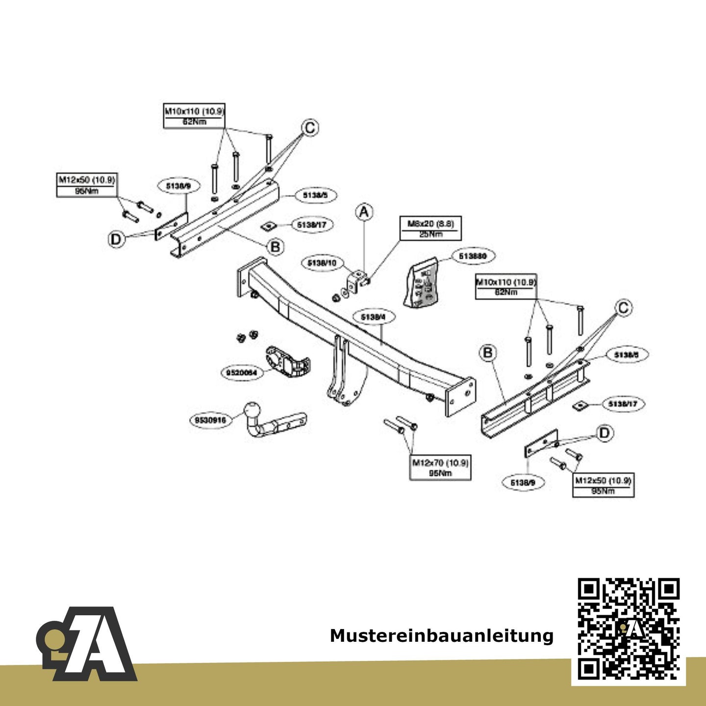 Die Anbauzeit hängt vom Fahrzeugtyp, der gewählten Kupplung und dem Elektrosatz ab. In vielen Fällen ist der Einbau innerhalb von etwa drei Stunden erledigt. Bei aufwendigeren Montagen, etwa bei schwenkbaren Systemen oder schwieriger Fahrzeuggeometrie, kann es auch länger dauern. Besonders der Anschluss des Elektrosatzes sollte von Fachpersonal übernommen werden, um Fehler im Bordnetz zu vermeiden. Die geschätzte Montagedauer für dieses Modell beträgt 2h. Diese Angabe richtet sich an Fachwerkstätten und ist ein Richtwert – je nach Fahrzeugmodell und Elektrosatz kann es etwas schneller oder langsamer gehen.