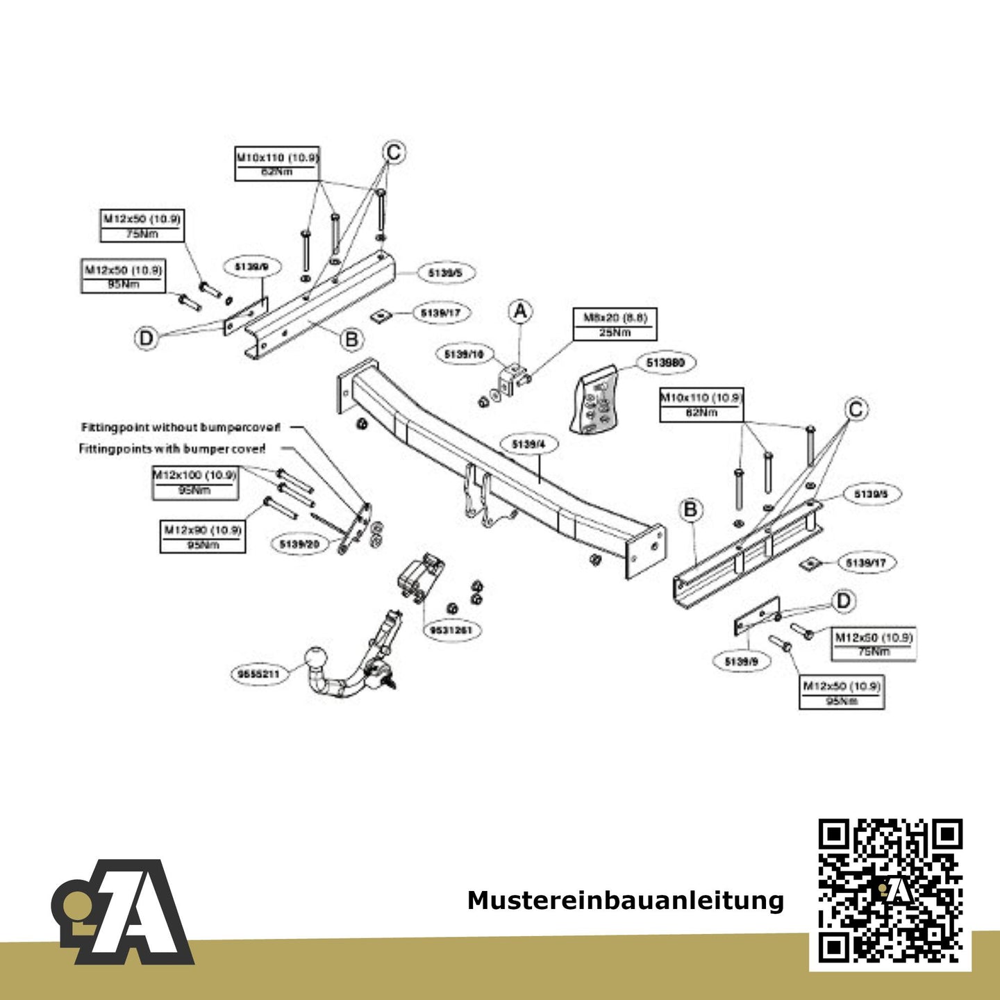 Die Anbauzeit hängt vom Fahrzeugtyp, der gewählten Kupplung und dem Elektrosatz ab. In vielen Fällen ist der Einbau innerhalb von etwa drei Stunden erledigt. Bei aufwendigeren Montagen, etwa bei schwenkbaren Systemen oder schwieriger Fahrzeuggeometrie, kann es auch länger dauern. Besonders der Anschluss des Elektrosatzes sollte von Fachpersonal übernommen werden, um Fehler im Bordnetz zu vermeiden. Die geschätzte Montagedauer für dieses Modell beträgt 2h. Diese Angabe richtet sich an Fachwerkstätten und ist ein Richtwert – je nach Fahrzeugmodell und Elektrosatz kann es etwas schneller oder langsamer gehen.