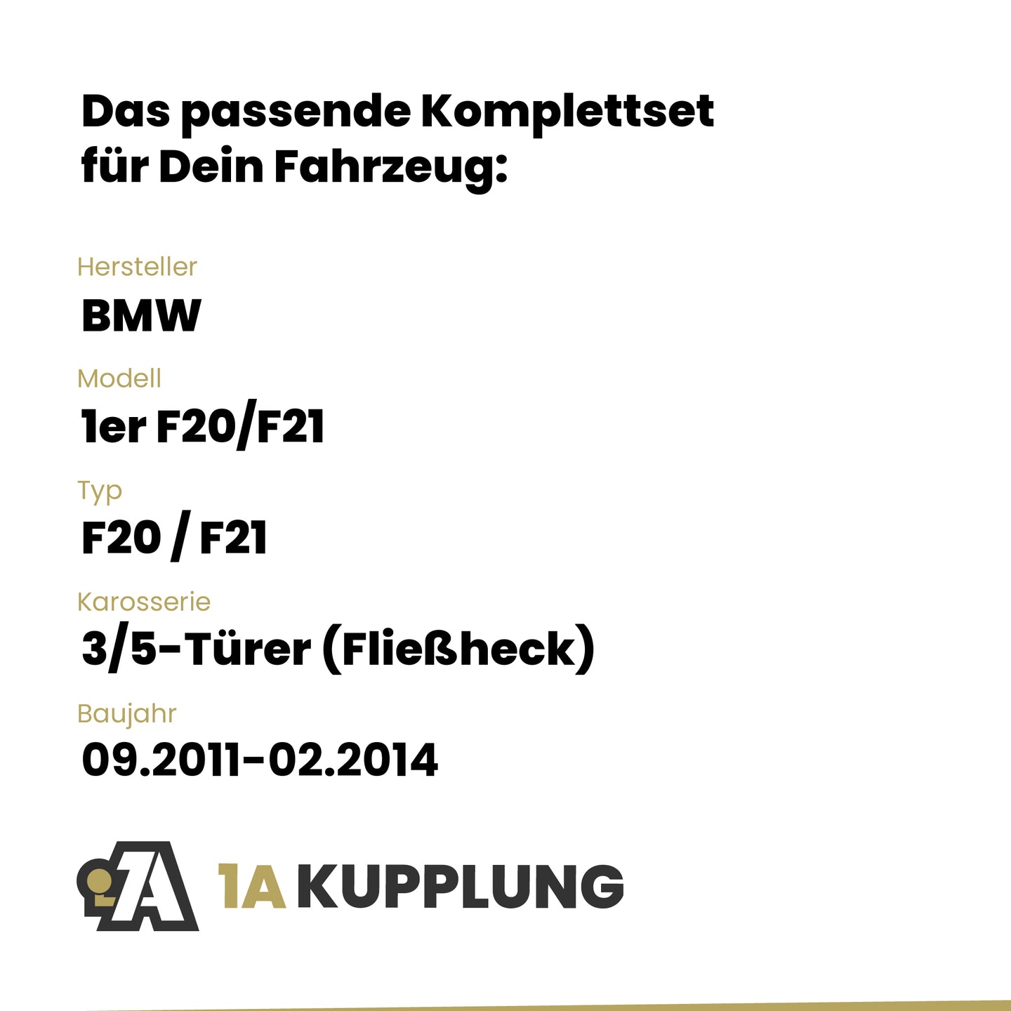 Passt zu BMW 1er F20/F21 3/5-Türer (Fließheck), Baujahr 09.2011-02.2014, Typ: F20 / F21