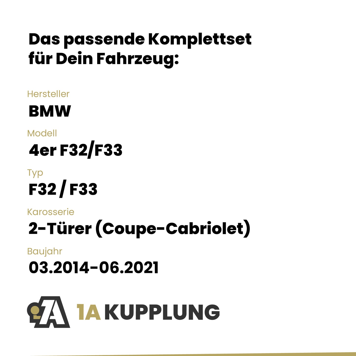 Passt zu BMW 4er F32/F33 2-Türer (Coupe-Cabriolet), Baujahr 03.2014-06.2021, Typ: F32 / F33