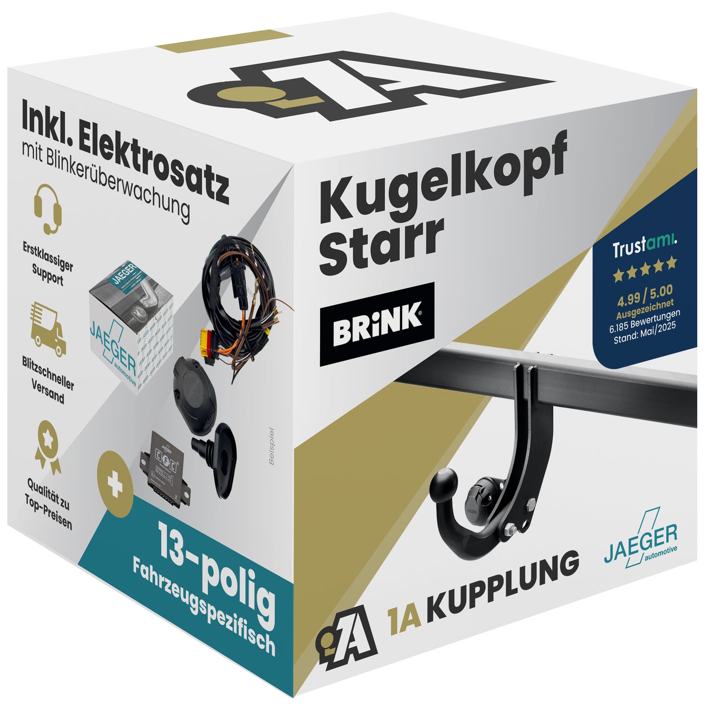 Kein langes Suchen mehr: Unsere Anhängerkupplungen kommen im „Sorglos‑Set“ mit dem passenden, fahrzeugspezifischen 13‑poligen Elektrosatz von JAEGER Automotive – direkt vom Premium-Lieferanten aus Verl. Alles, was du zum perfekten Anschluss brauchst, ist inklusive.