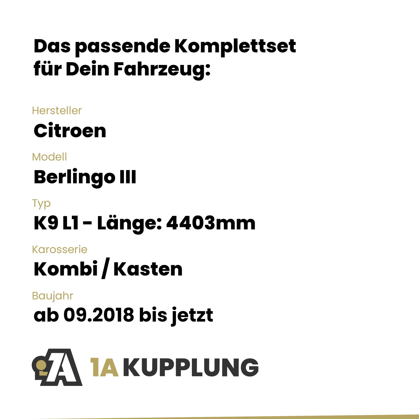 Passt zu Citroen Berlingo III Kombi / Kasten, Baujahr ab 09.2018, Typ: K9 L1 - Länge: 4403mm