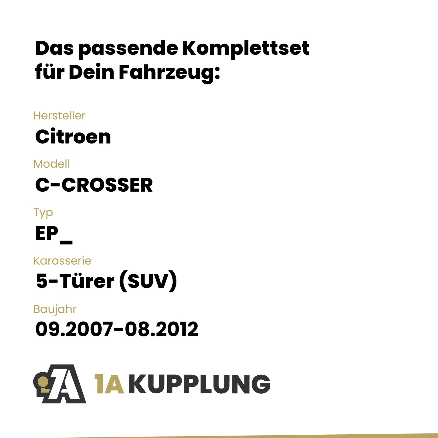 Passt zu Citroen C-CROSSER 5-Türer (SUV), Baujahr 09.2007-08.2012, Typ: EP_