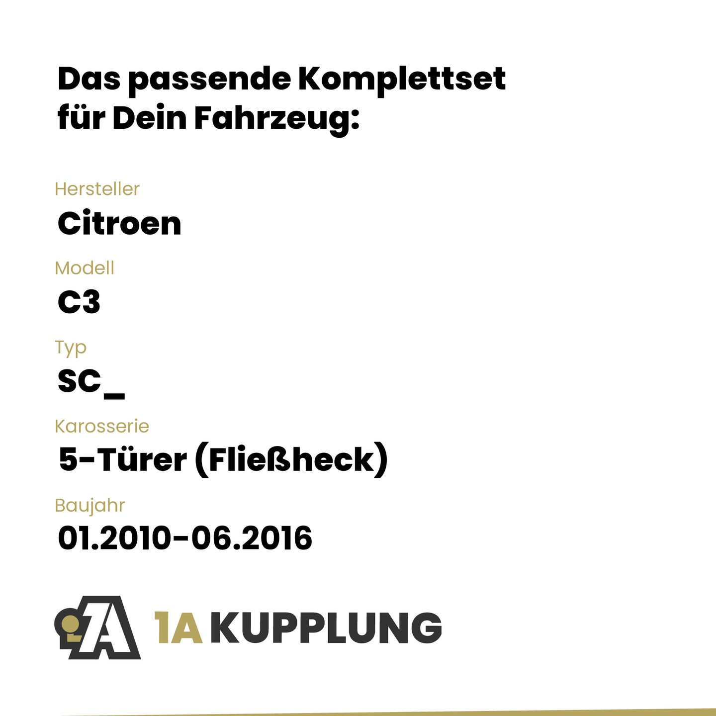 Passt zu Citroen C3 5-Türer (Fließheck), Baujahr 01.2010-06.2016, Typ: SC_