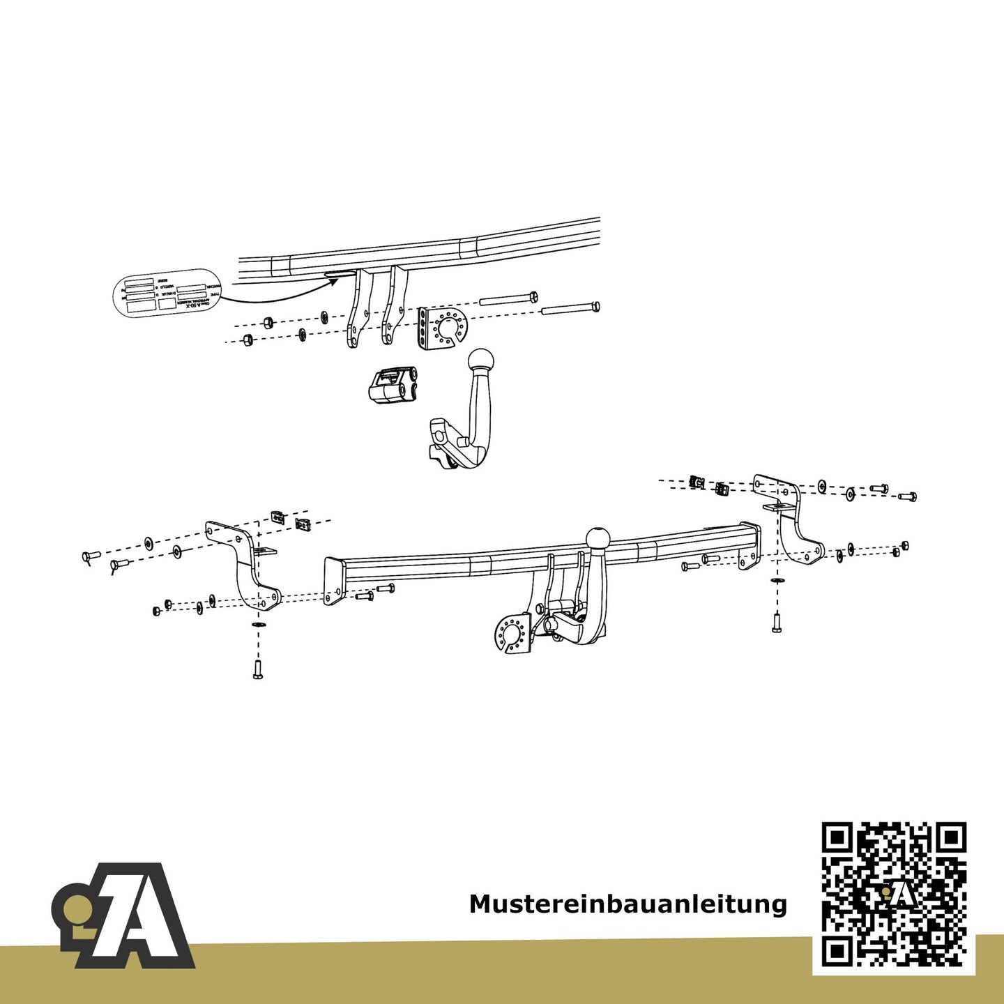 Die Anbauzeit hängt vom Fahrzeugtyp, der gewählten Kupplung und dem Elektrosatz ab. In vielen Fällen ist der Einbau innerhalb von etwa drei Stunden erledigt. Bei aufwendigeren Montagen, etwa bei schwenkbaren Systemen oder schwieriger Fahrzeuggeometrie, kann es auch länger dauern. Besonders der Anschluss des Elektrosatzes sollte von Fachpersonal übernommen werden, um Fehler im Bordnetz zu vermeiden. Die geschätzte Montagedauer für dieses Modell beträgt 1h. Diese Angabe richtet sich an Fachwerkstätten und ist ein Richtwert – je nach Fahrzeugmodell und Elektrosatz kann es etwas schneller oder langsamer gehen.