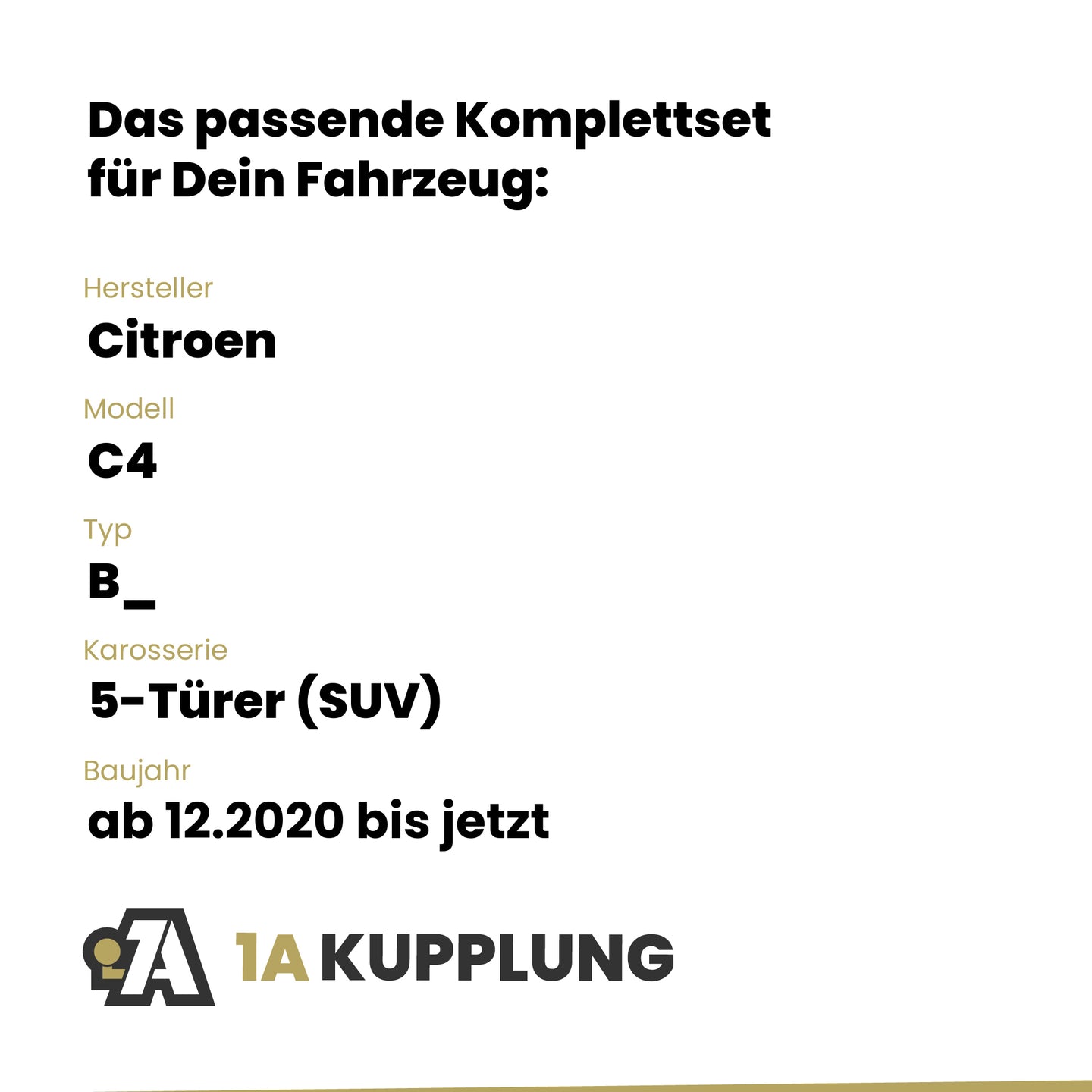 Passt zu Citroen C4 5-Türer (SUV), Baujahr ab 12.2020, Typ: B_