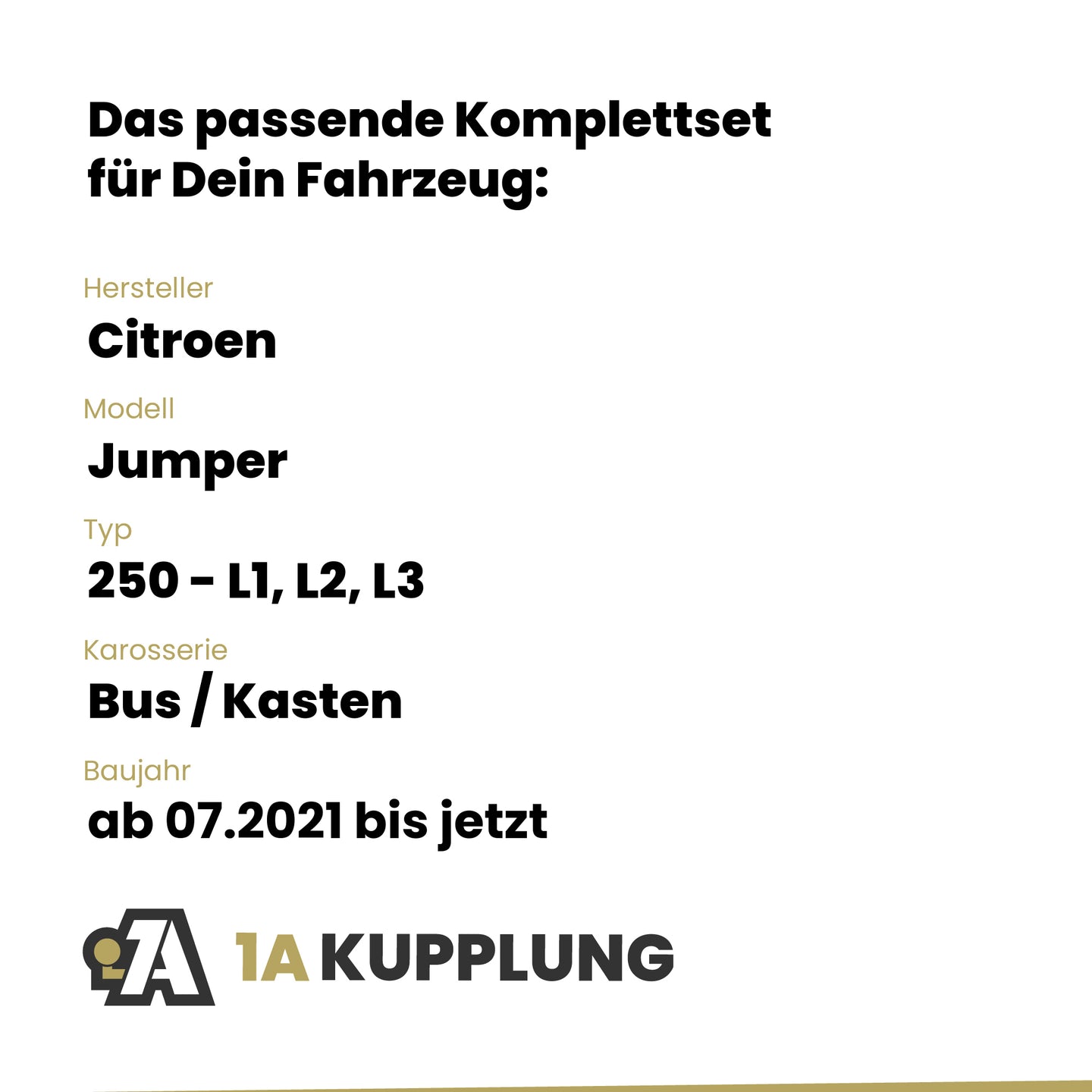 Passt zu Citroen Jumper Bus / Kasten, Baujahr 07.2021-06.2024, Typ: 250 - L1, L2, L3