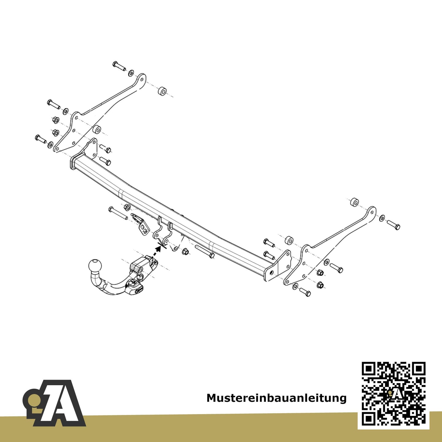 Die Anbauzeit hängt vom Fahrzeugtyp, der gewählten Kupplung und dem Elektrosatz ab. In vielen Fällen ist der Einbau innerhalb von etwa drei Stunden erledigt. Bei aufwendigeren Montagen, etwa bei schwenkbaren Systemen oder schwieriger Fahrzeuggeometrie, kann es auch länger dauern. Besonders der Anschluss des Elektrosatzes sollte von Fachpersonal übernommen werden, um Fehler im Bordnetz zu vermeiden. Die geschätzte Montagedauer für dieses Modell beträgt 1h. Diese Angabe richtet sich an Fachwerkstätten und ist ein Richtwert – je nach Fahrzeugmodell und Elektrosatz kann es etwas schneller oder langsamer gehen.