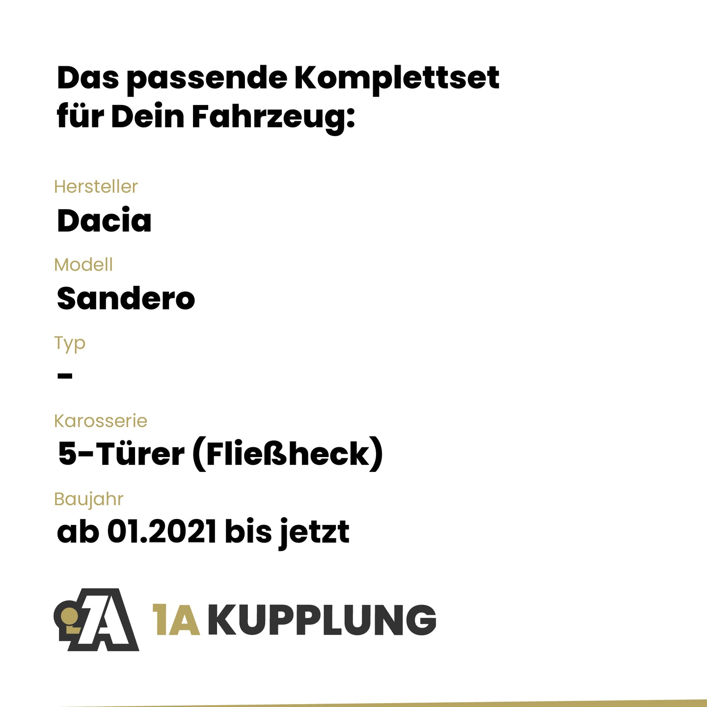 Passt zu Dacia Sandero 5-Türer (Fließheck), Baujahr ab 01.2021, Typ: