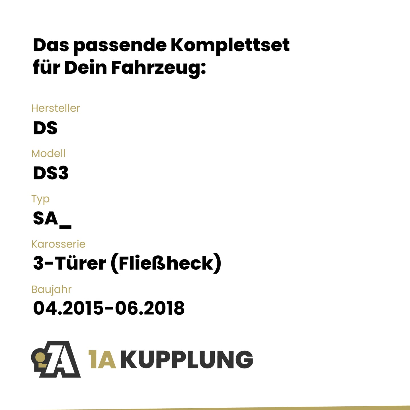 Passt zu DS DS3 3-Türer (Fließheck), Baujahr 04.2015-06.2018, Typ: SA_