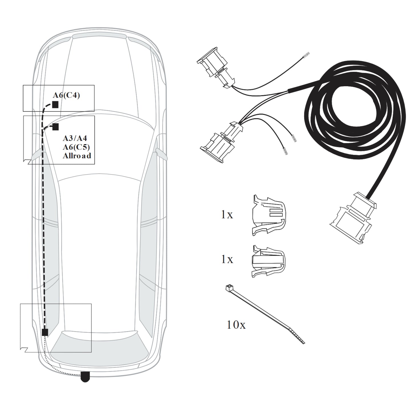 Erweiterungssatz 22010001 der Firma JAEGER Automotive für Audi-Fahrzeuge mit Check-Control-System