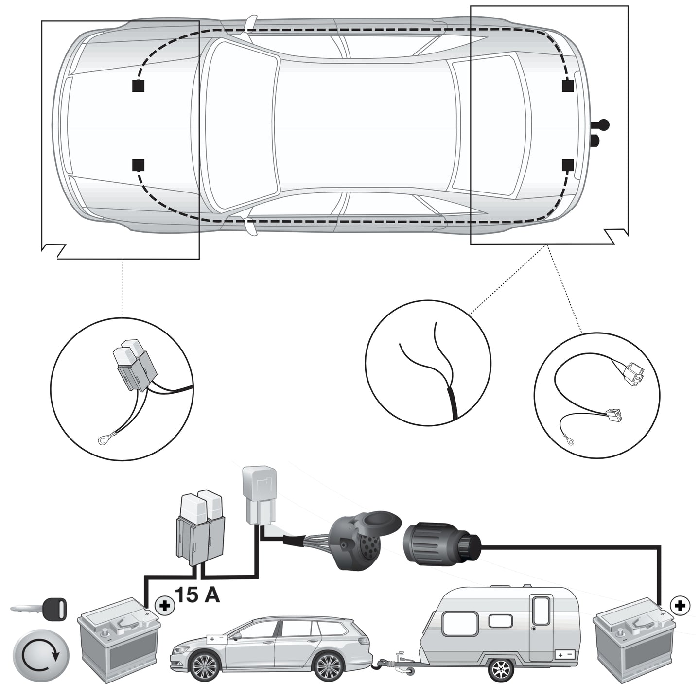 Erweiterungssatz 22400509 Ladeleitung zur Spannungsversorgung 13pol Dose PIN 10 & 11 für Elektrosätze der Firma JAEGER Automotive