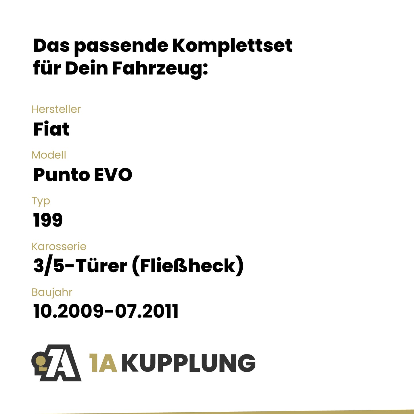 Passt zu Fiat Punto EVO 3/5-Türer (Fließheck), Baujahr 10.2009-07.2011, Typ: 199