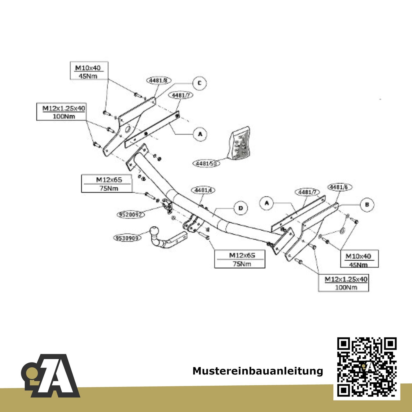 Die Anbauzeit hängt vom Fahrzeugtyp, der gewählten Kupplung und dem Elektrosatz ab. In vielen Fällen ist der Einbau innerhalb von etwa drei Stunden erledigt. Bei aufwendigeren Montagen, etwa bei schwenkbaren Systemen oder schwieriger Fahrzeuggeometrie, kann es auch länger dauern. Besonders der Anschluss des Elektrosatzes sollte von Fachpersonal übernommen werden, um Fehler im Bordnetz zu vermeiden. Die geschätzte Montagedauer für dieses Modell beträgt 1,5h. Diese Angabe richtet sich an Fachwerkstätten und ist ein Richtwert – je nach Fahrzeugmodell und Elektrosatz kann es etwas schneller oder langsamer gehen.
