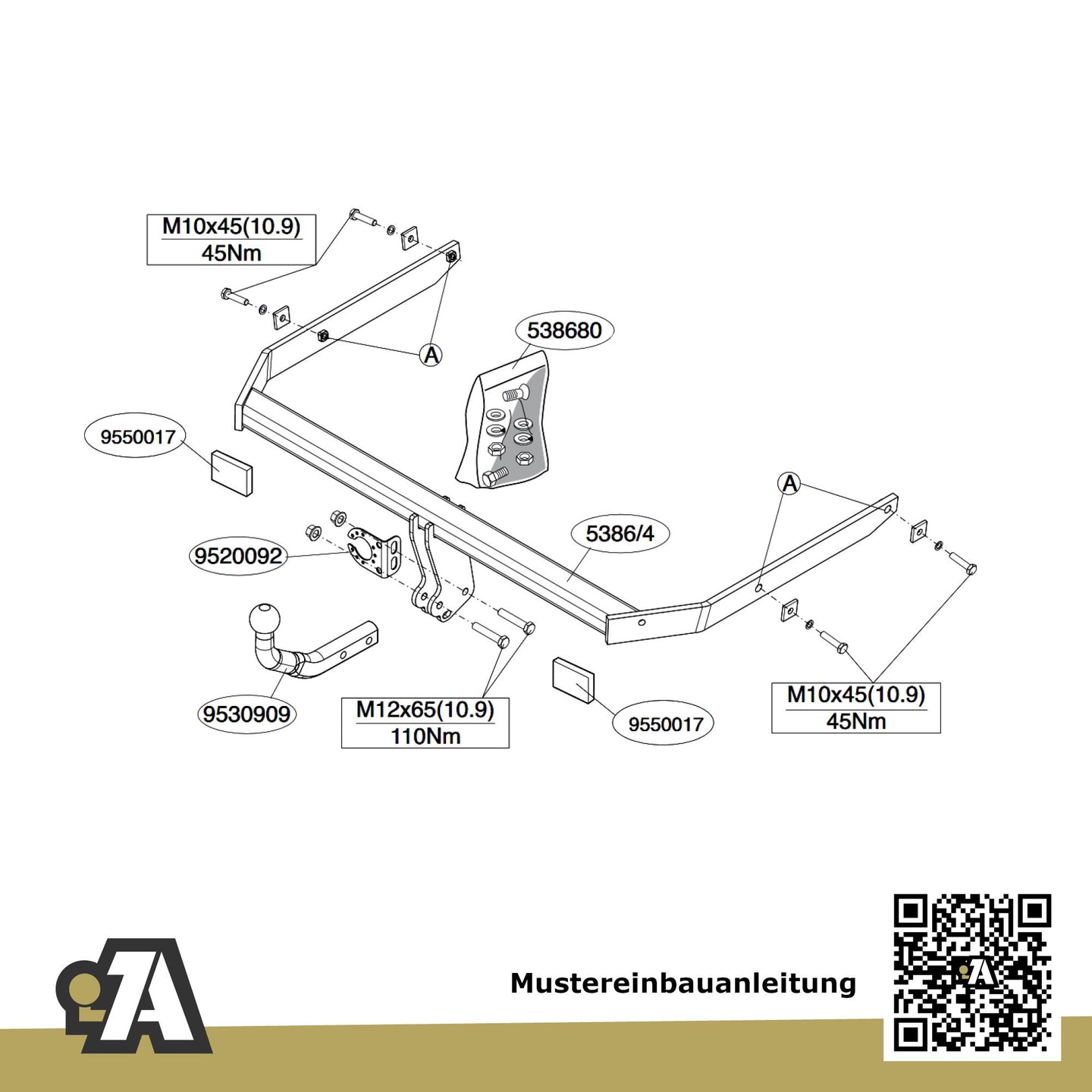 Die Anbauzeit hängt vom Fahrzeugtyp, der gewählten Kupplung und dem Elektrosatz ab. In vielen Fällen ist der Einbau innerhalb von etwa drei Stunden erledigt. Bei aufwendigeren Montagen, etwa bei schwenkbaren Systemen oder schwieriger Fahrzeuggeometrie, kann es auch länger dauern. Besonders der Anschluss des Elektrosatzes sollte von Fachpersonal übernommen werden, um Fehler im Bordnetz zu vermeiden. Die geschätzte Montagedauer für dieses Modell beträgt 1,5h. Diese Angabe richtet sich an Fachwerkstätten und ist ein Richtwert – je nach Fahrzeugmodell und Elektrosatz kann es etwas schneller oder langsamer gehen.