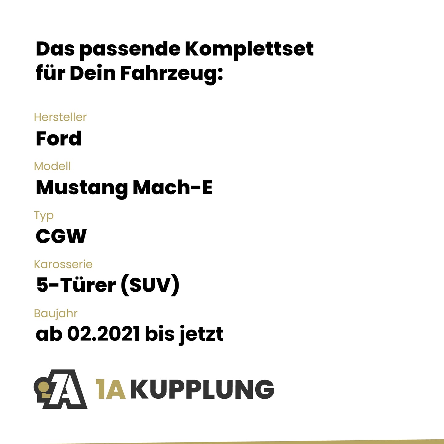Passt zu Ford Mustang Mach-E 5-Türer (SUV), Baujahr ab 02.2021, Typ: CGW