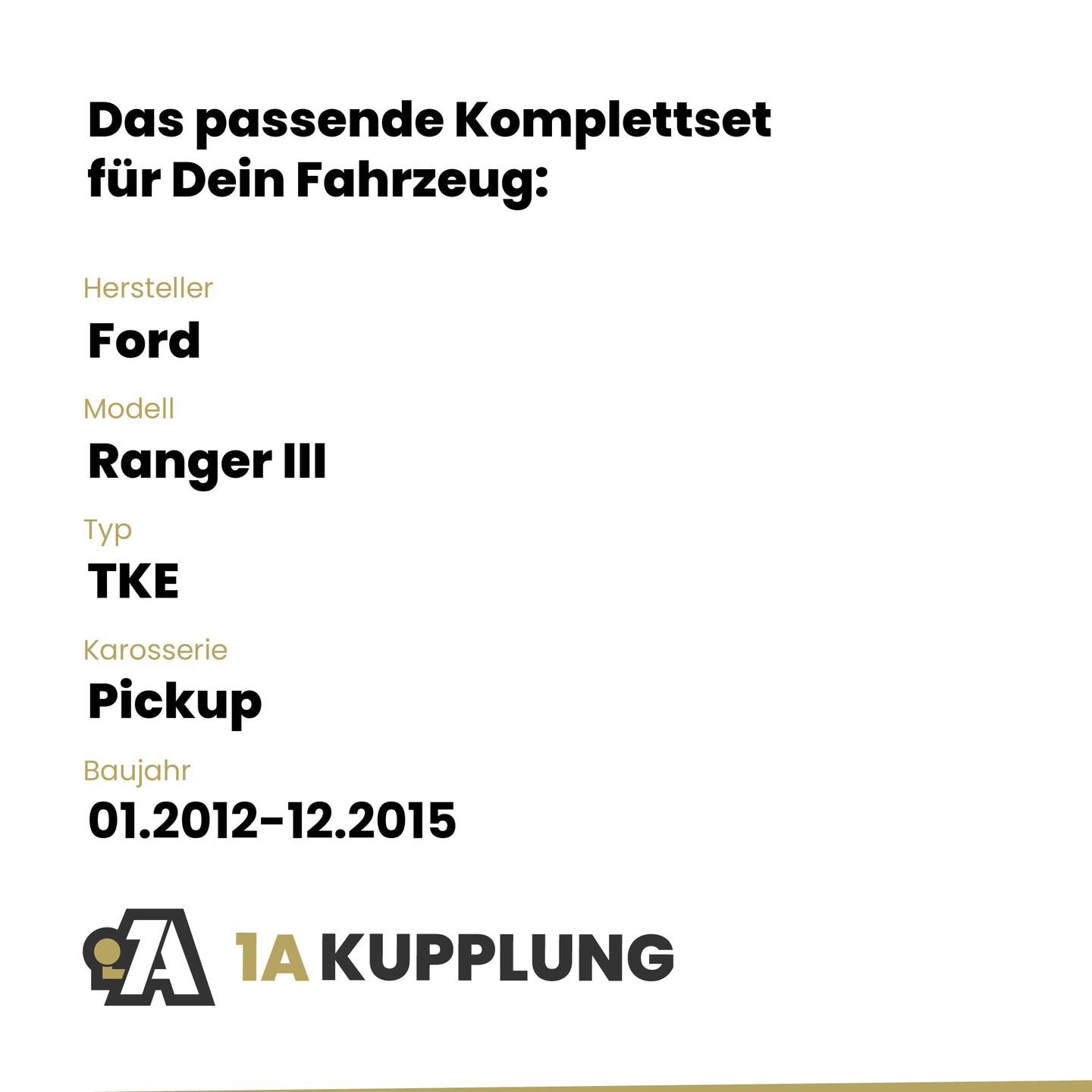 Passt zu Ford Ranger III Pickup, Baujahr 01.2012-12.2015, Typ: TKE