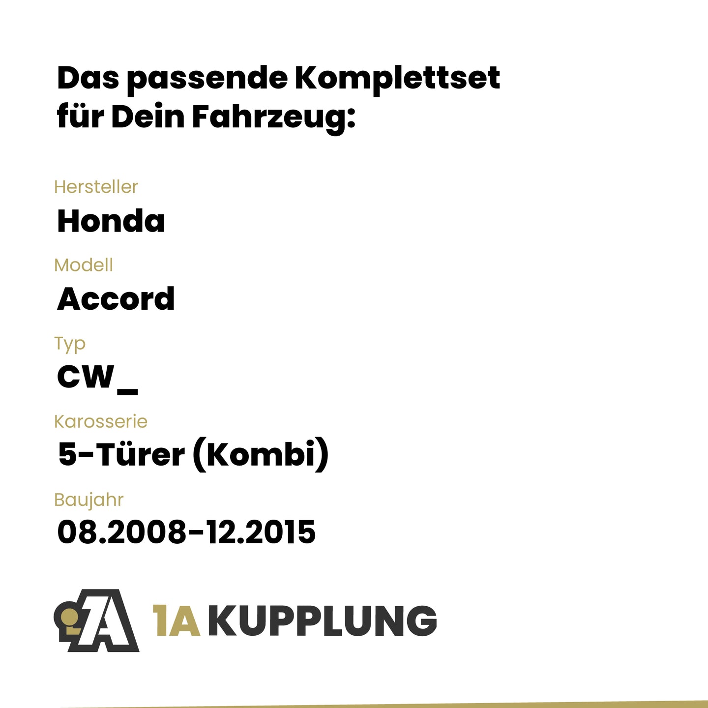 Passt zu Honda Accord 5-Türer (Kombi), Baujahr 08.2008-12.2015, Typ: CW_