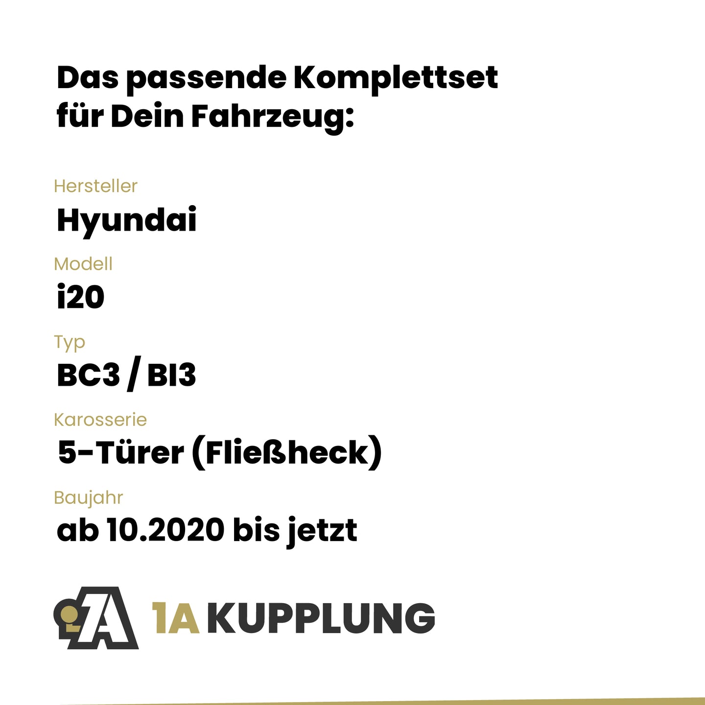 Passt zu Hyundai i20 5-Türer (Fließheck), Baujahr ab 08.2023, Typ: BC3 / BI3