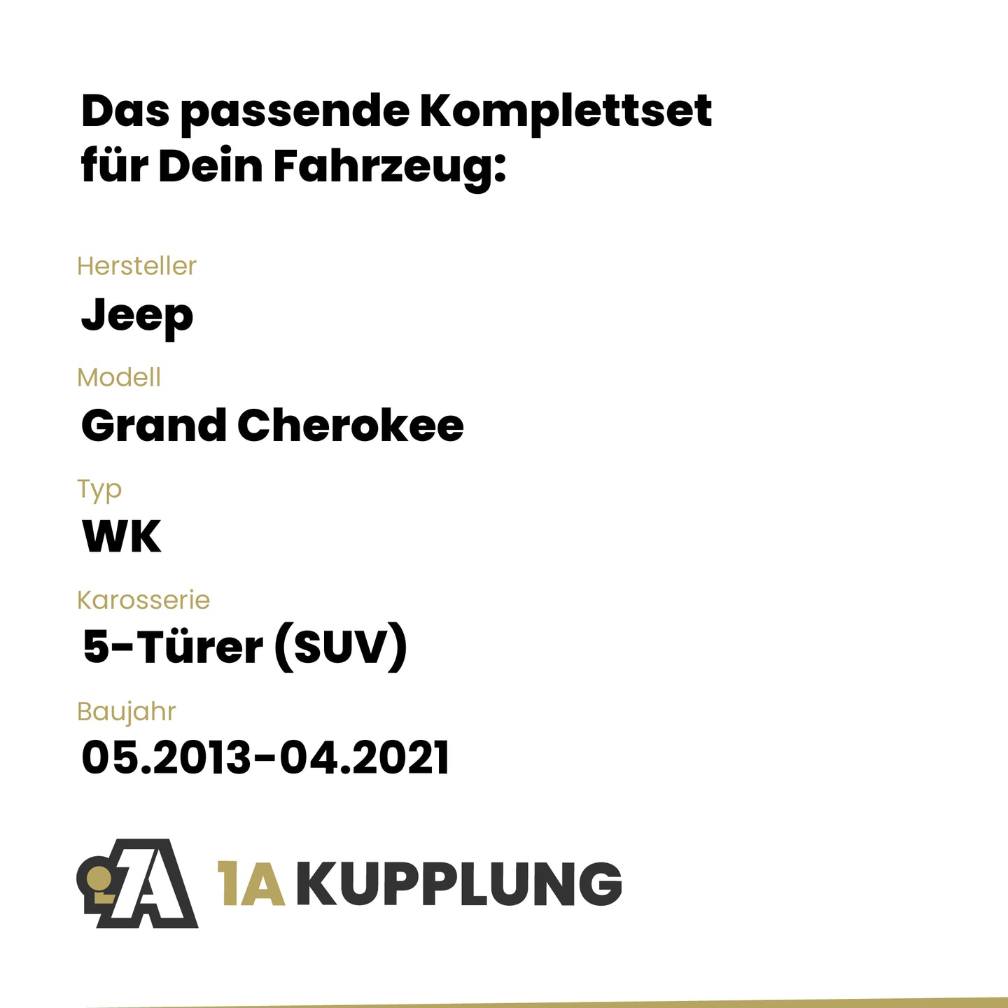Passt zu Jeep Grand Cherokee 5-Türer (SUV), Baujahr 05.2013-04.2021, Typ: WK