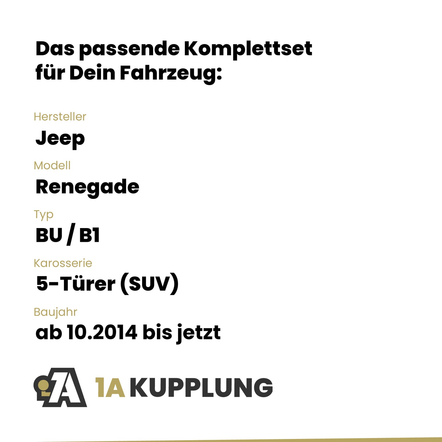 Passt zu Jeep Renegade 5-Türer (SUV), Baujahr ab 10.2014, Typ: BU / B1
