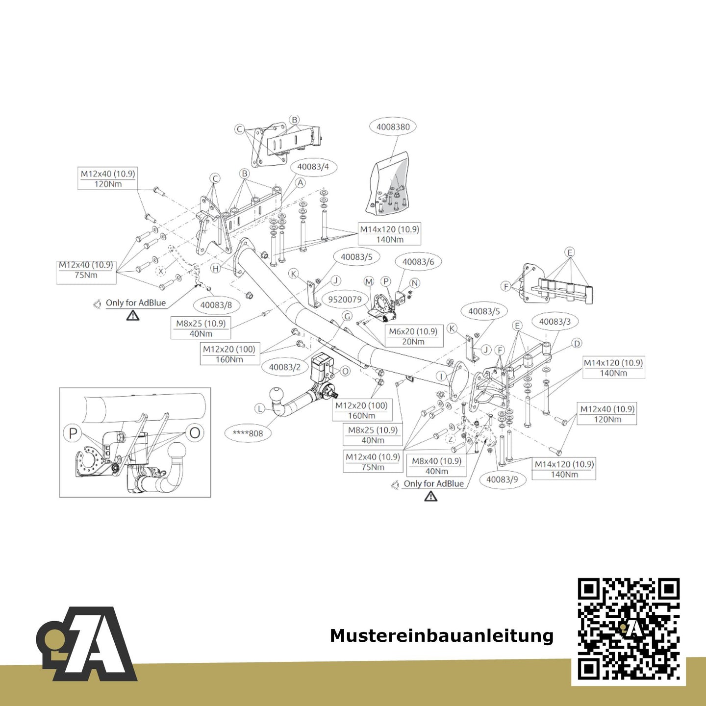 Die Anbauzeit hängt vom Fahrzeugtyp, der gewählten Kupplung und dem Elektrosatz ab. In vielen Fällen ist der Einbau innerhalb von etwa drei Stunden erledigt. Bei aufwendigeren Montagen, etwa bei schwenkbaren Systemen oder schwieriger Fahrzeuggeometrie, kann es auch länger dauern. Besonders der Anschluss des Elektrosatzes sollte von Fachpersonal übernommen werden, um Fehler im Bordnetz zu vermeiden. Die geschätzte Montagedauer für dieses Modell beträgt 2h. Diese Angabe richtet sich an Fachwerkstätten und ist ein Richtwert – je nach Fahrzeugmodell und Elektrosatz kann es etwas schneller oder langsamer gehen.
