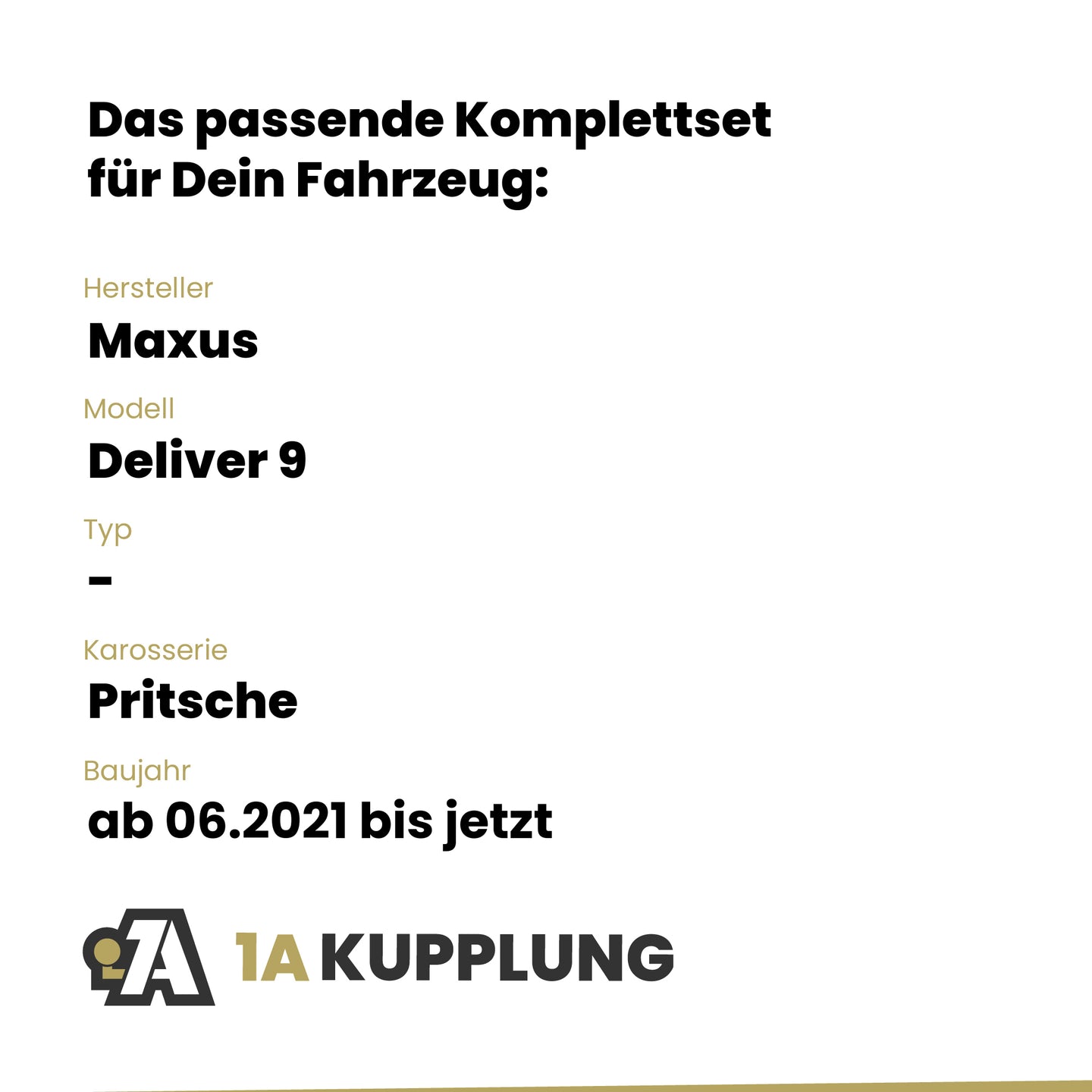 Passt zu Maxus Deliver 9 Pritsche, Baujahr ab 06.2021, Typ: