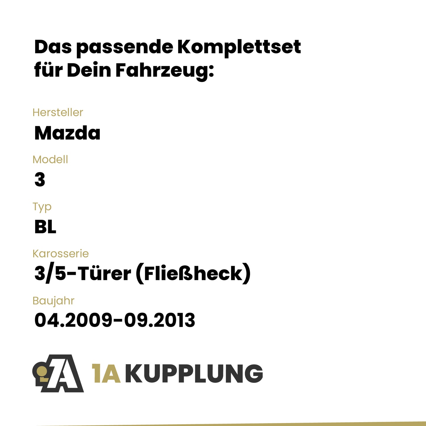Passt zu Mazda 3 3/5-Türer (Fließheck), Baujahr 04.2009-09.2013, Typ: BL