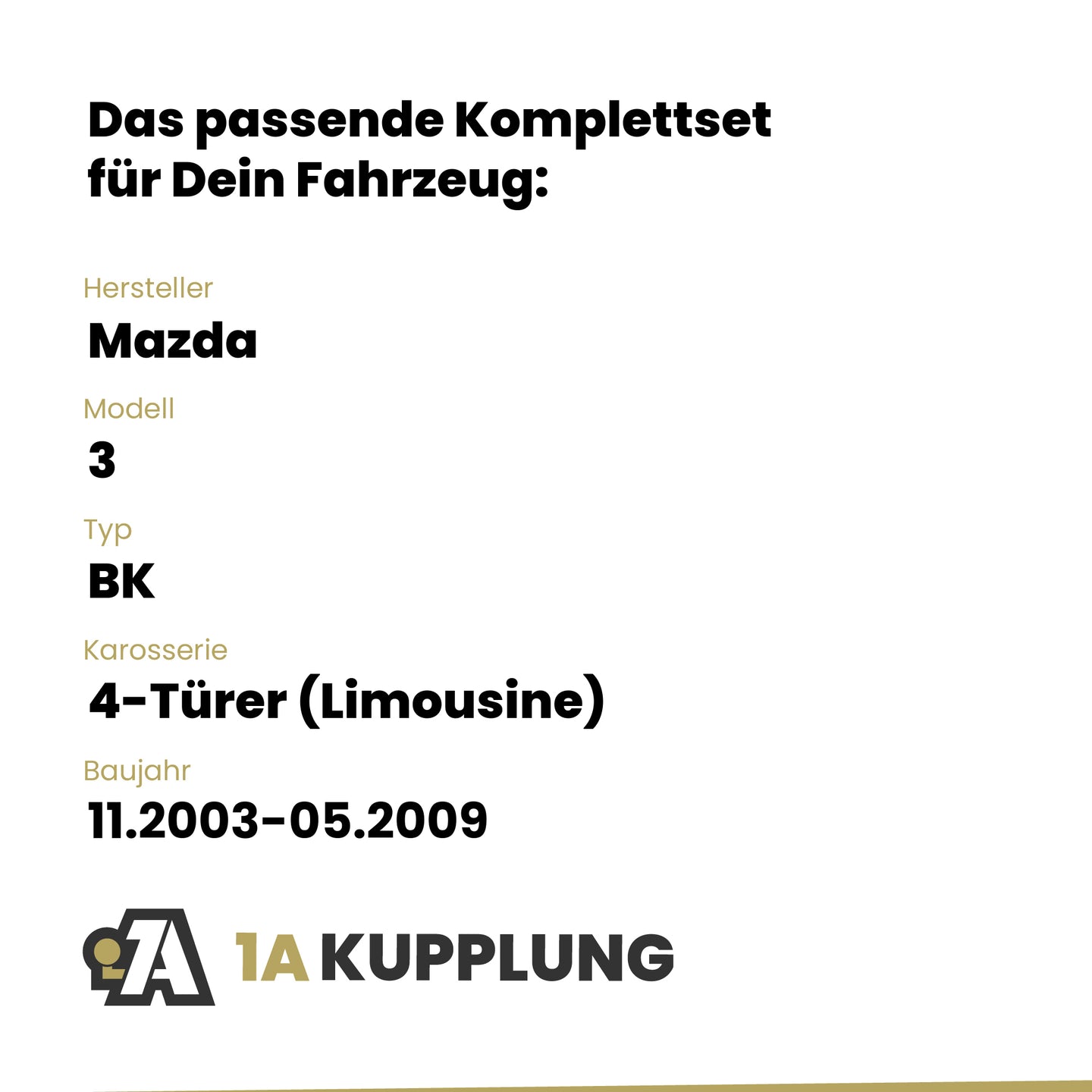 Passt zu Mazda 3 4-Türer (Limousine), Baujahr 11.2003-05.2009, Typ: BK