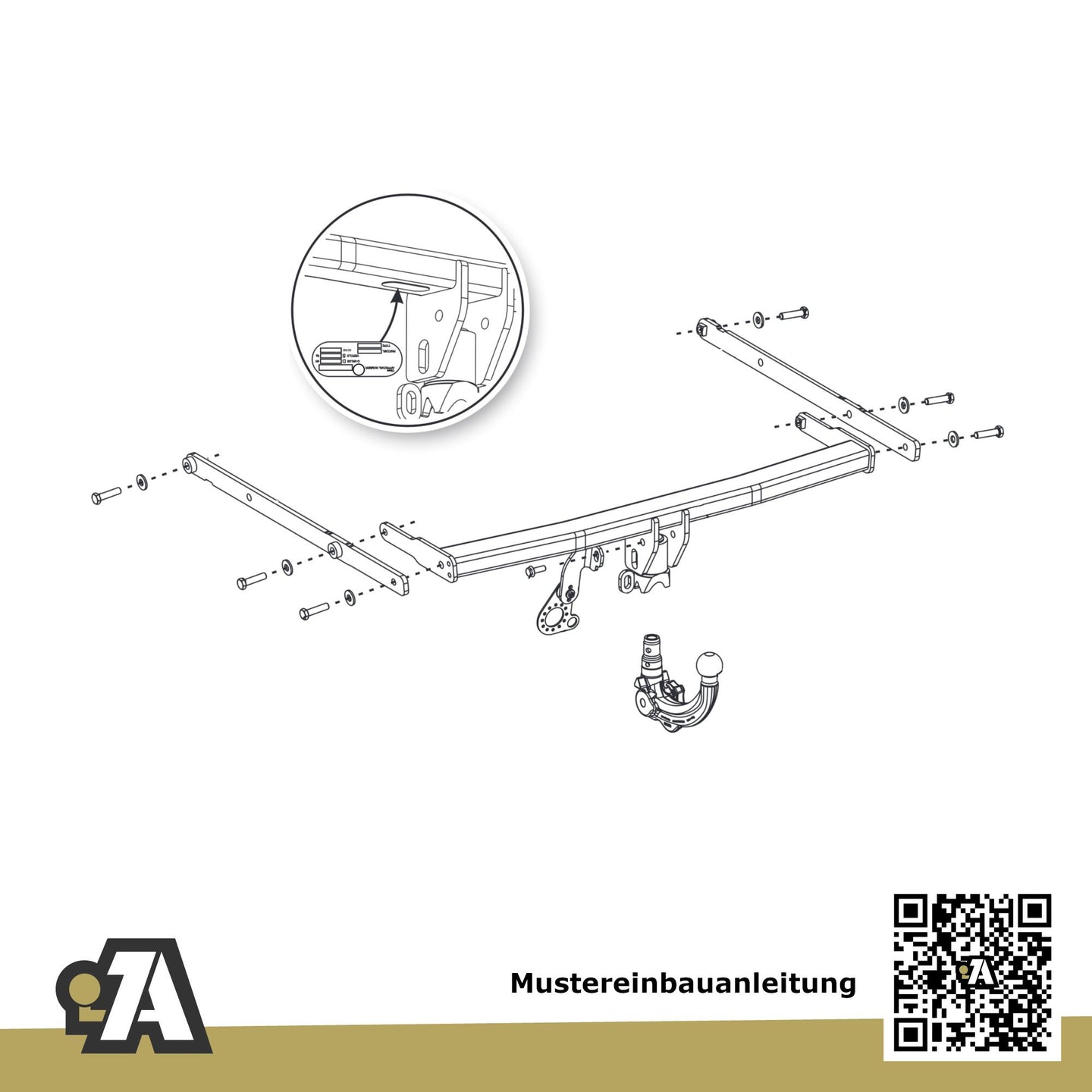 Die Anbauzeit hängt vom Fahrzeugtyp, der gewählten Kupplung und dem Elektrosatz ab. In vielen Fällen ist der Einbau innerhalb von etwa drei Stunden erledigt. Bei aufwendigeren Montagen, etwa bei schwenkbaren Systemen oder schwieriger Fahrzeuggeometrie, kann es auch länger dauern. Besonders der Anschluss des Elektrosatzes sollte von Fachpersonal übernommen werden, um Fehler im Bordnetz zu vermeiden. Die geschätzte Montagedauer für dieses Modell beträgt 2h. Diese Angabe richtet sich an Fachwerkstätten und ist ein Richtwert – je nach Fahrzeugmodell und Elektrosatz kann es etwas schneller oder langsamer gehen.