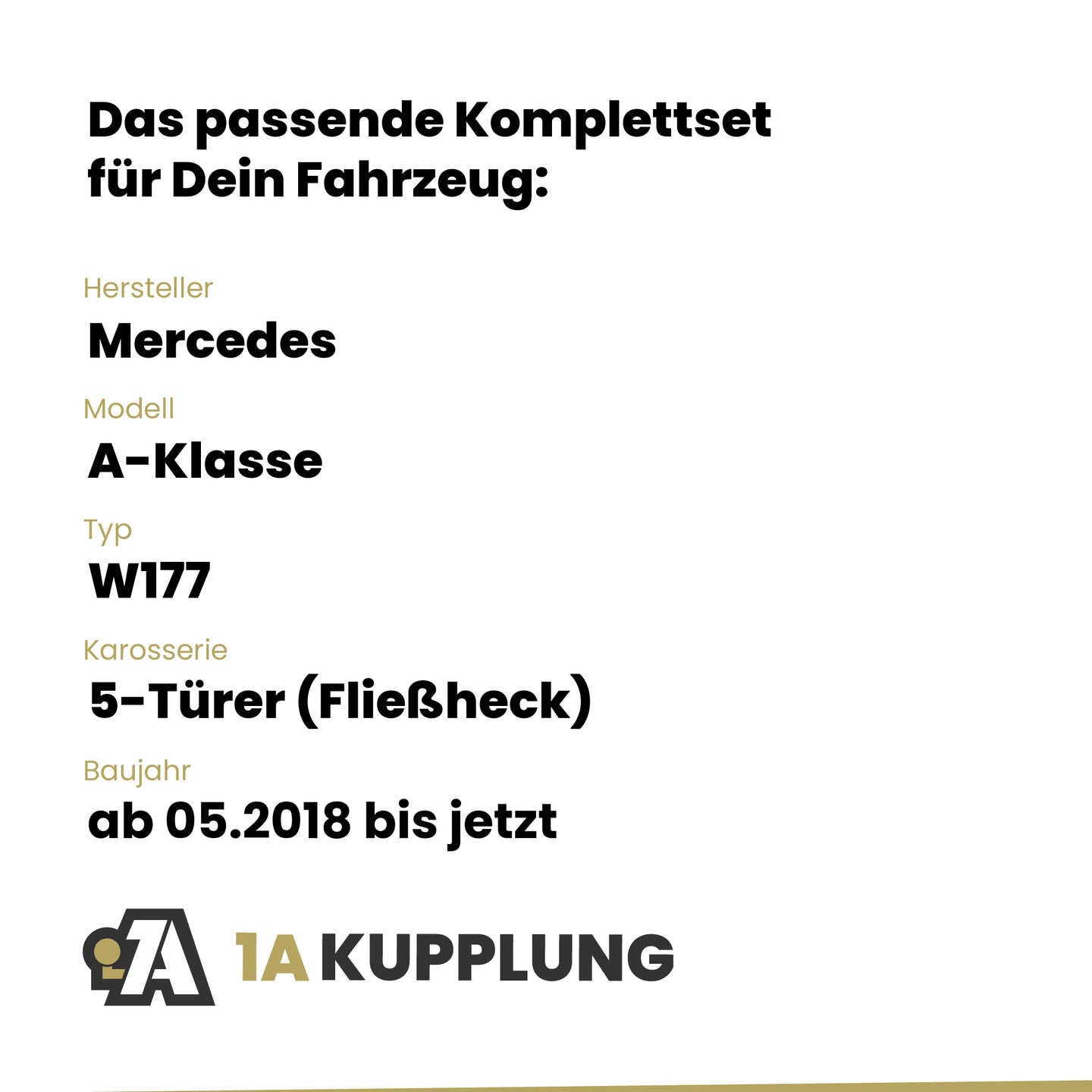Passt zu Mercedes A-Klasse 5-Türer (Fließheck), Baujahr ab 05.2018, Typ: W177