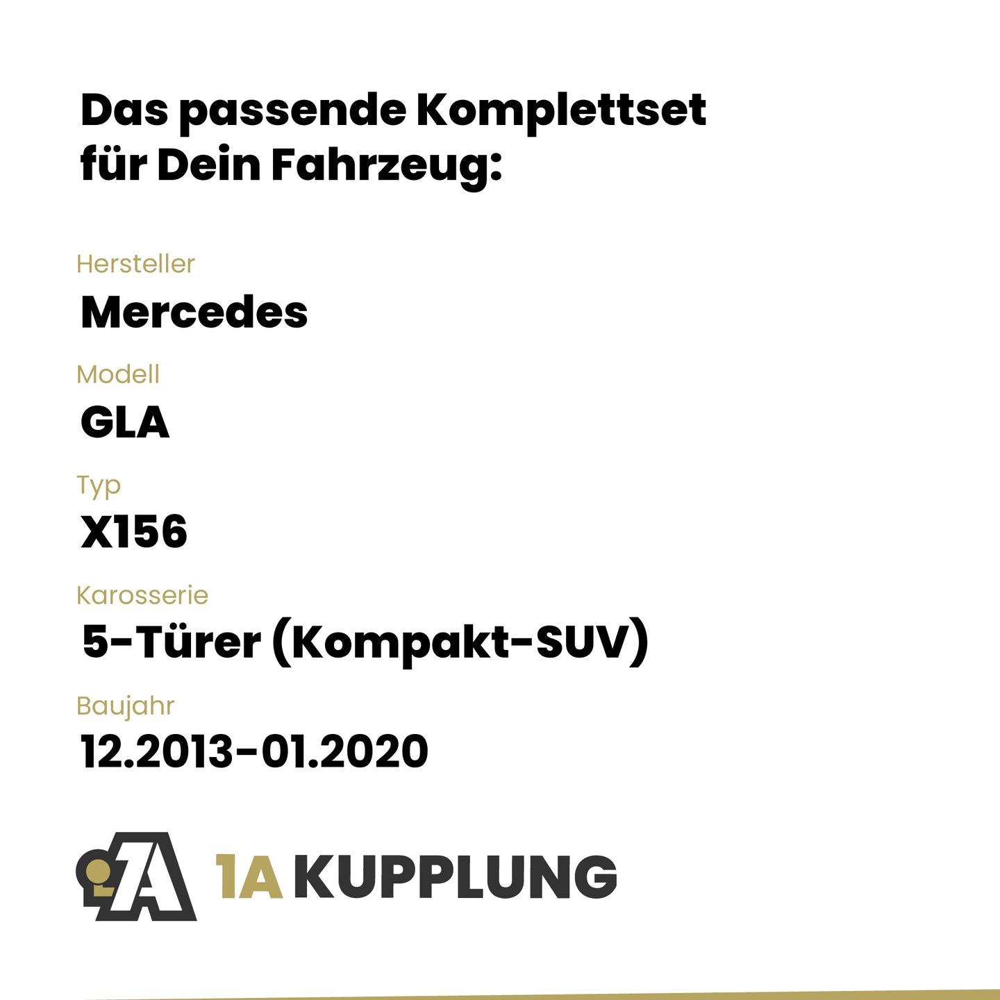 Passt zu Mercedes GLA 5-Türer (Kompakt-SUV), Baujahr 12.2013-01.2020, Typ: X156