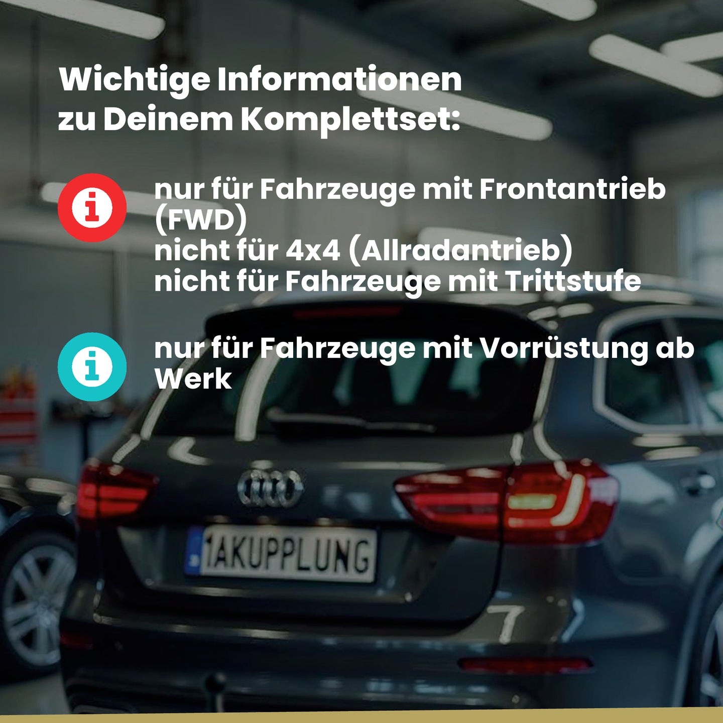 Kein langes Suchen mehr: Unsere Anhängerkupplungen kommen im „Sorglos‑Set“ mit dem passenden, fahrzeugspezifischen 13‑poligen Elektrosatz von JAEGER Automotive – direkt vom Premium-Lieferanten aus Verl. Alles, was du zum perfekten Anschluss brauchst, ist inklusive.