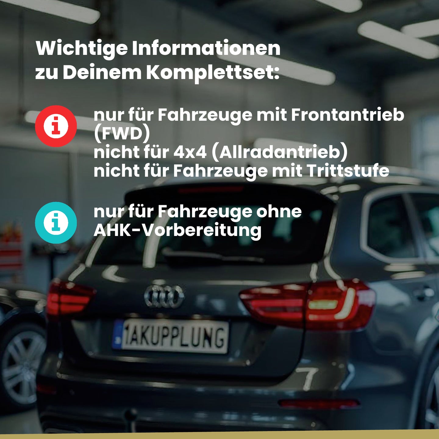 Nur für Fahrzeuge mit Frontantrieb (FWD). Nicht für 4x4 (Allradantrieb). Nicht für Fahrzeuge mit Trittstufe.