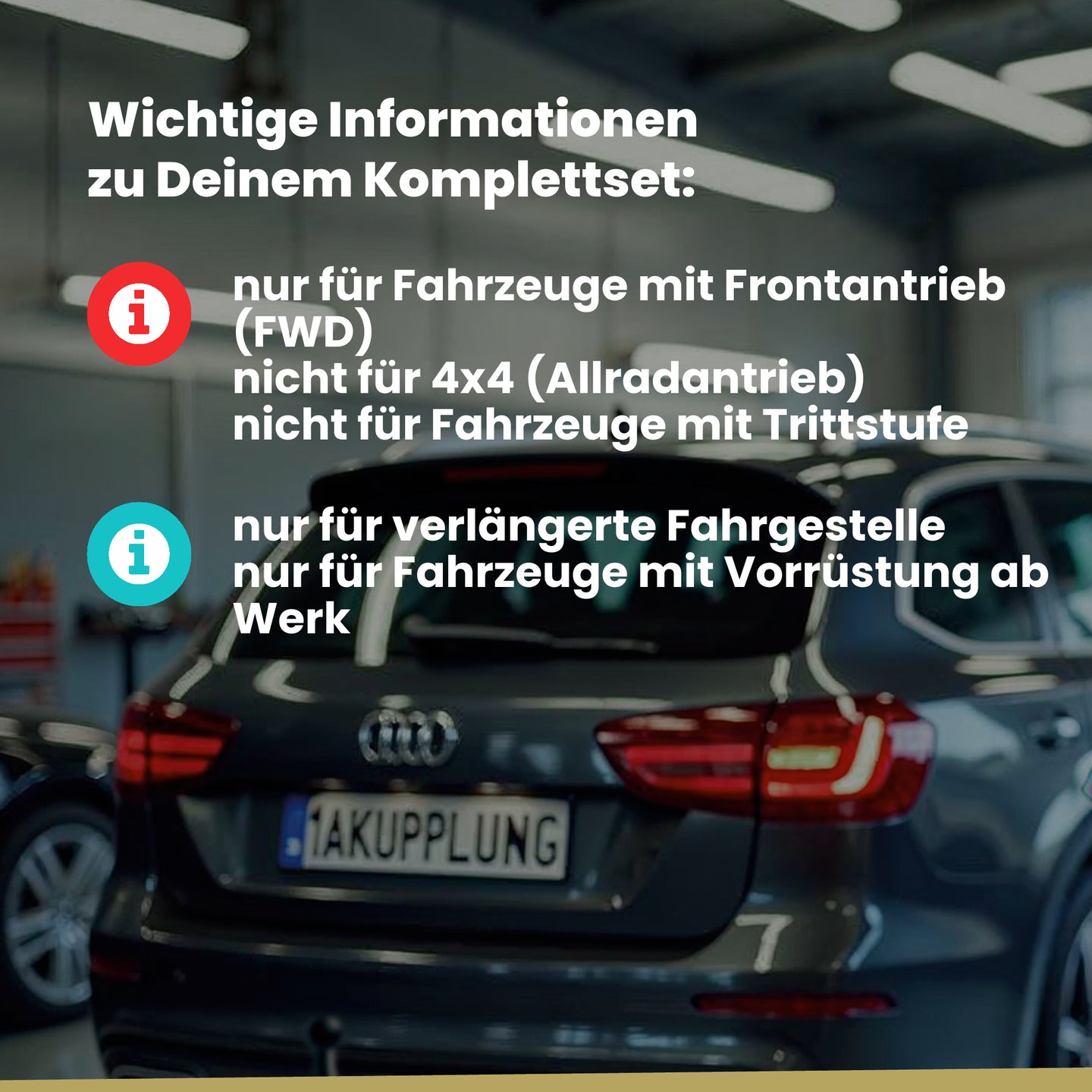 Kein langes Suchen mehr: Unsere Anhängerkupplungen kommen im „Sorglos‑Set“ mit dem passenden, fahrzeugspezifischen 13‑poligen Elektrosatz von JAEGER Automotive – direkt vom Premium-Lieferanten aus Verl. Alles, was du zum perfekten Anschluss brauchst, ist inklusive.
