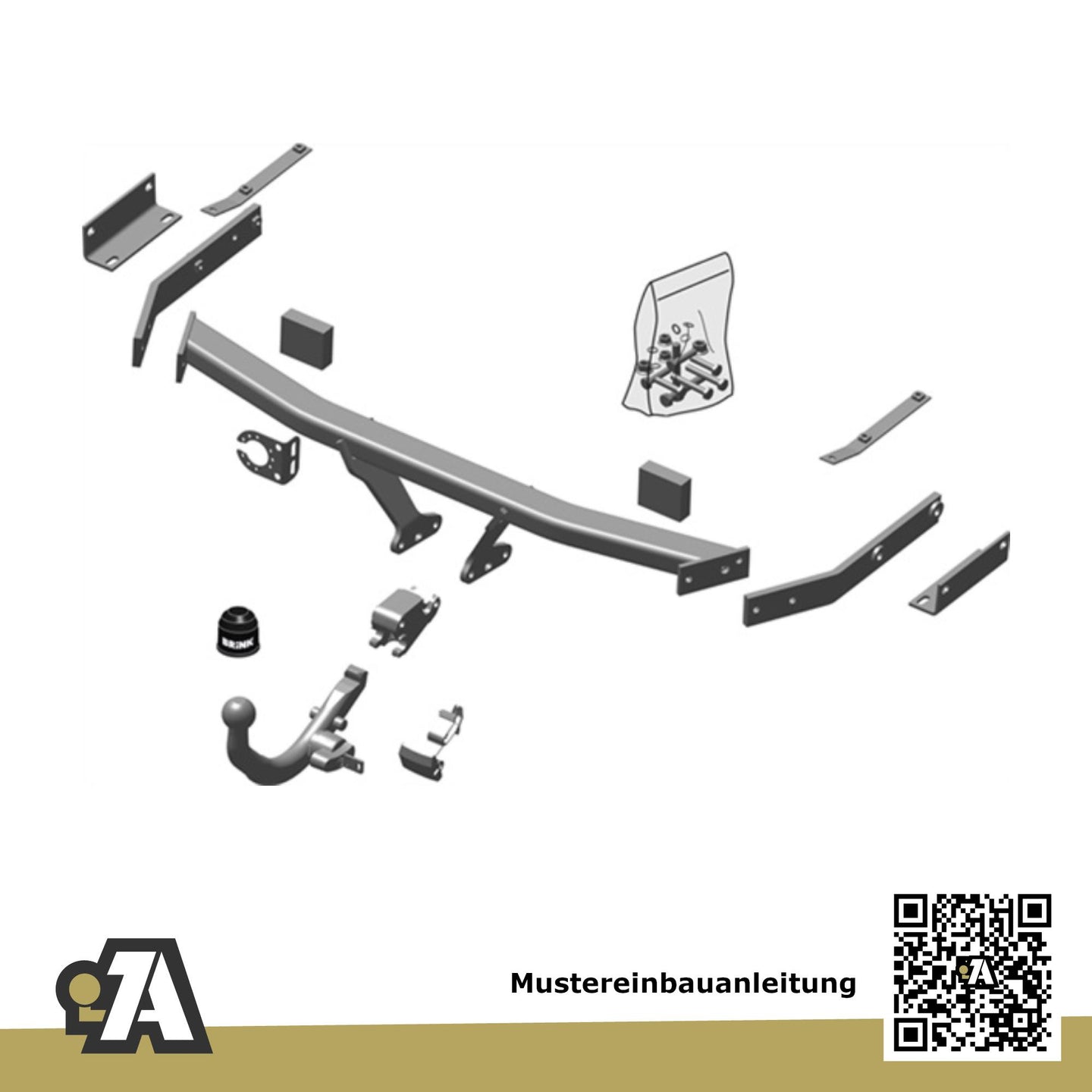 Die Anbauzeit hängt vom Fahrzeugtyp, der gewählten Kupplung und dem Elektrosatz ab. In vielen Fällen ist der Einbau innerhalb von etwa drei Stunden erledigt. Bei aufwendigeren Montagen, etwa bei schwenkbaren Systemen oder schwieriger Fahrzeuggeometrie, kann es auch länger dauern. Besonders der Anschluss des Elektrosatzes sollte von Fachpersonal übernommen werden, um Fehler im Bordnetz zu vermeiden. Die geschätzte Montagedauer für dieses Modell beträgt 2h. Diese Angabe richtet sich an Fachwerkstätten und ist ein Richtwert – je nach Fahrzeugmodell und Elektrosatz kann es etwas schneller oder langsamer gehen.