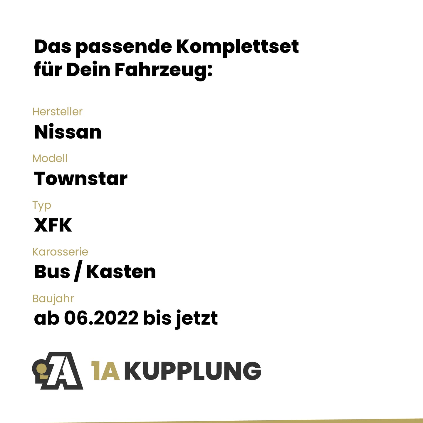 Passt zu Nissan Townstar Bus / Kasten, Baujahr ab 06.2022, Typ: XFK