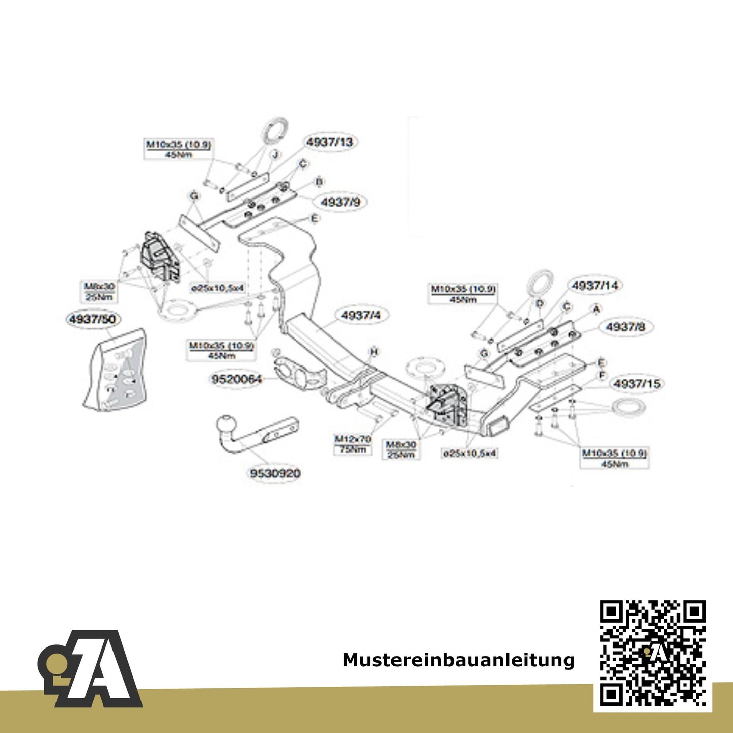 Die Anbauzeit hängt vom Fahrzeugtyp, der gewählten Kupplung und dem Elektrosatz ab. In vielen Fällen ist der Einbau innerhalb von etwa drei Stunden erledigt. Bei aufwendigeren Montagen, etwa bei schwenkbaren Systemen oder schwieriger Fahrzeuggeometrie, kann es auch länger dauern. Besonders der Anschluss des Elektrosatzes sollte von Fachpersonal übernommen werden, um Fehler im Bordnetz zu vermeiden. Die geschätzte Montagedauer für dieses Modell beträgt 2h. Diese Angabe richtet sich an Fachwerkstätten und ist ein Richtwert – je nach Fahrzeugmodell und Elektrosatz kann es etwas schneller oder langsamer gehen.