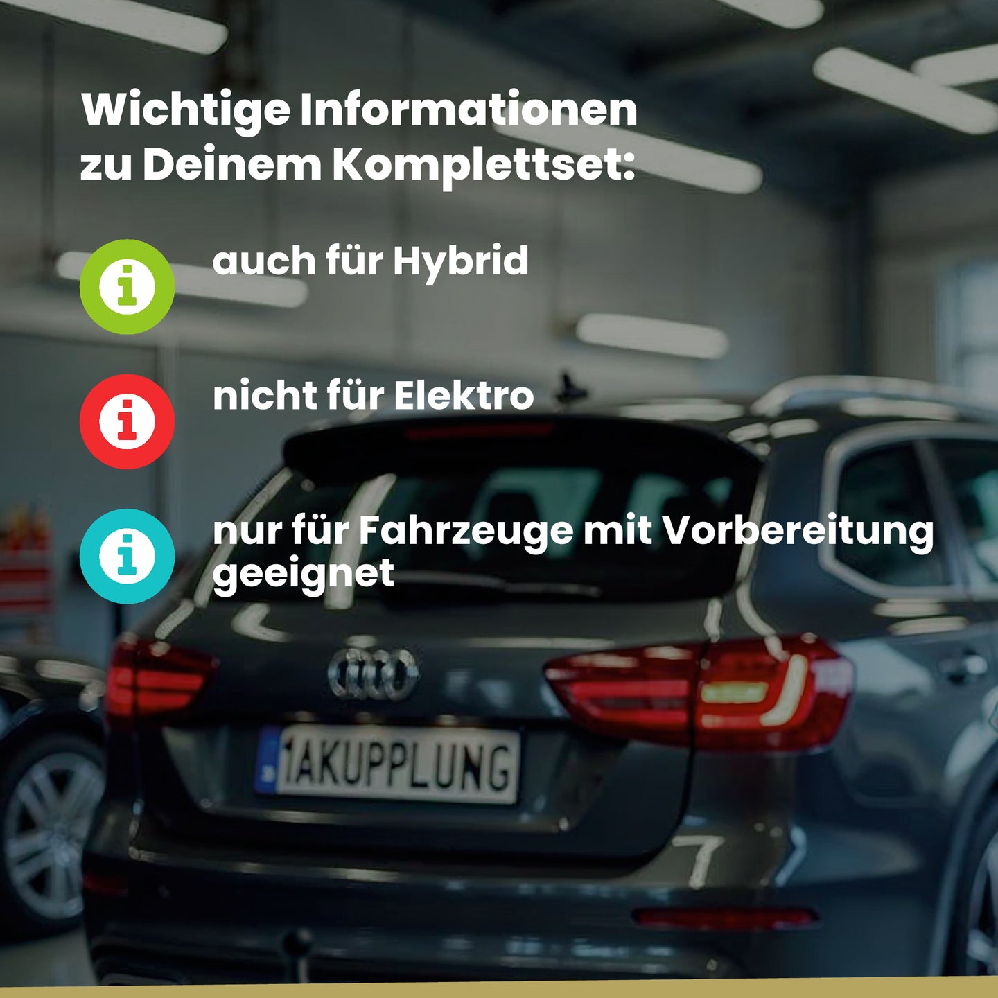 Kein langes Suchen mehr: Unsere Anhängerkupplungen kommen im „Sorglos‑Set“ mit dem passenden, fahrzeugspezifischen 13‑poligen Elektrosatz von JAEGER Automotive – direkt vom Premium-Lieferanten aus Verl. Alles, was du zum perfekten Anschluss brauchst, ist inklusive.