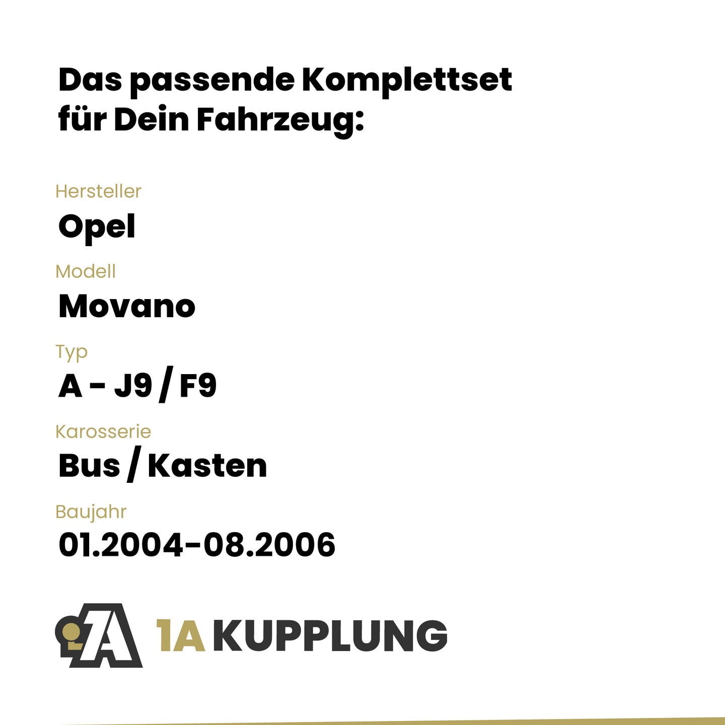 Passt zu Opel Movano Bus / Kasten, Baujahr 01.2004-08.2006, Typ: A - J9 / F9