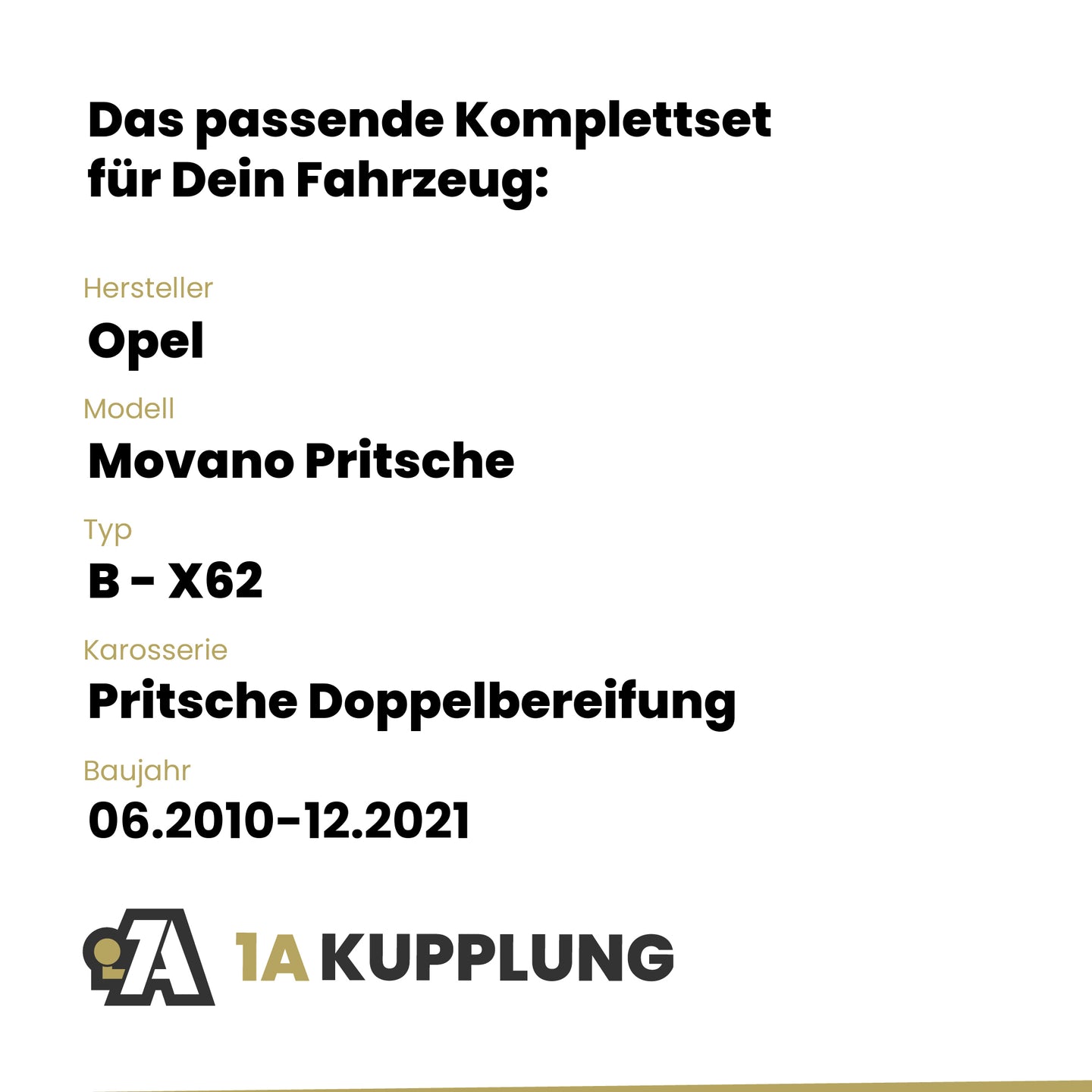 Passt zu Opel Movano Pritsche Pritsche Doppelbereifung, Baujahr 06.2010-12.2021, Typ: B - X62