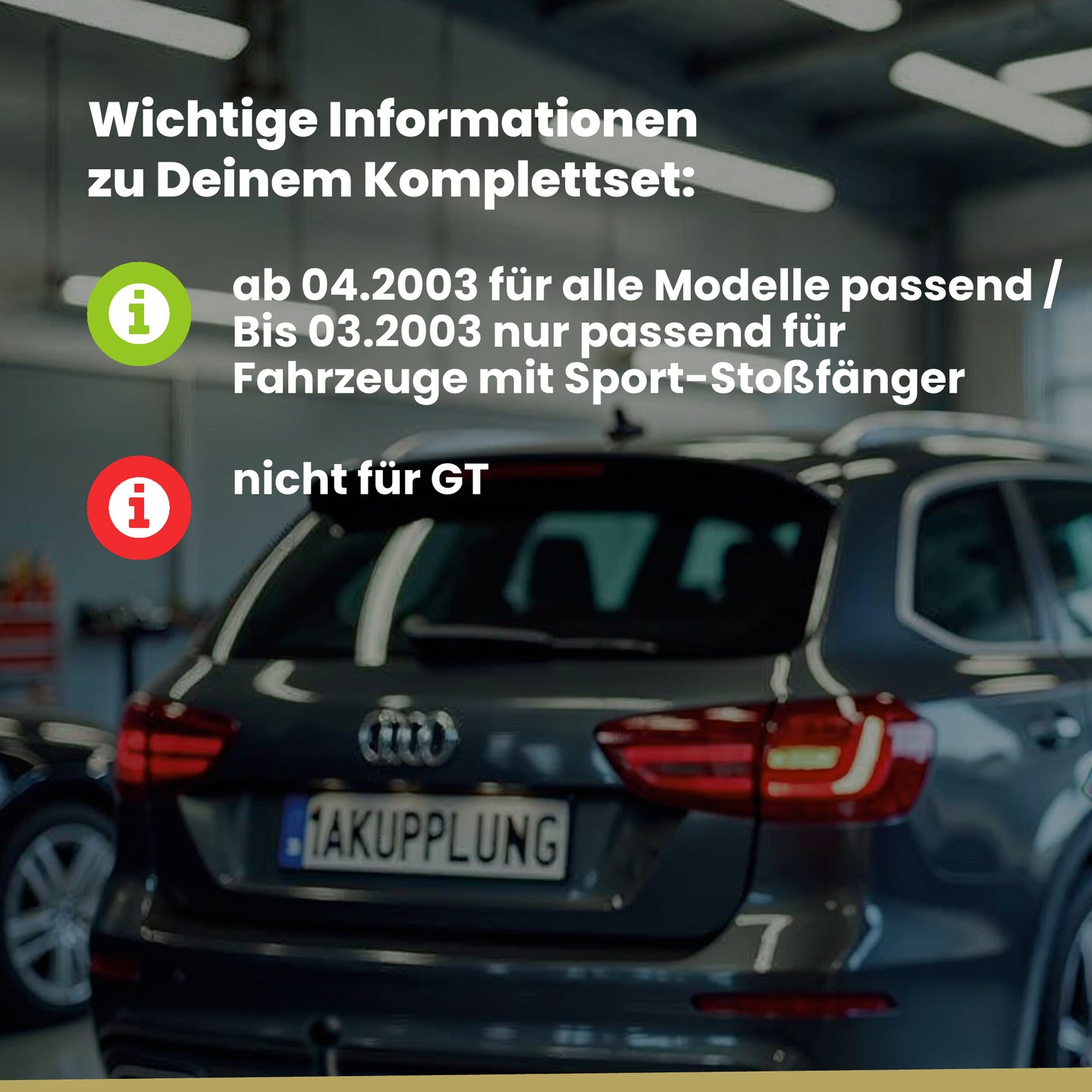 Nicht für GT. Ab 04.2003 für alle Modelle passend / Bis 03.2003 nur passend für Fahrzeuge mit Sport-Stoßfänger.