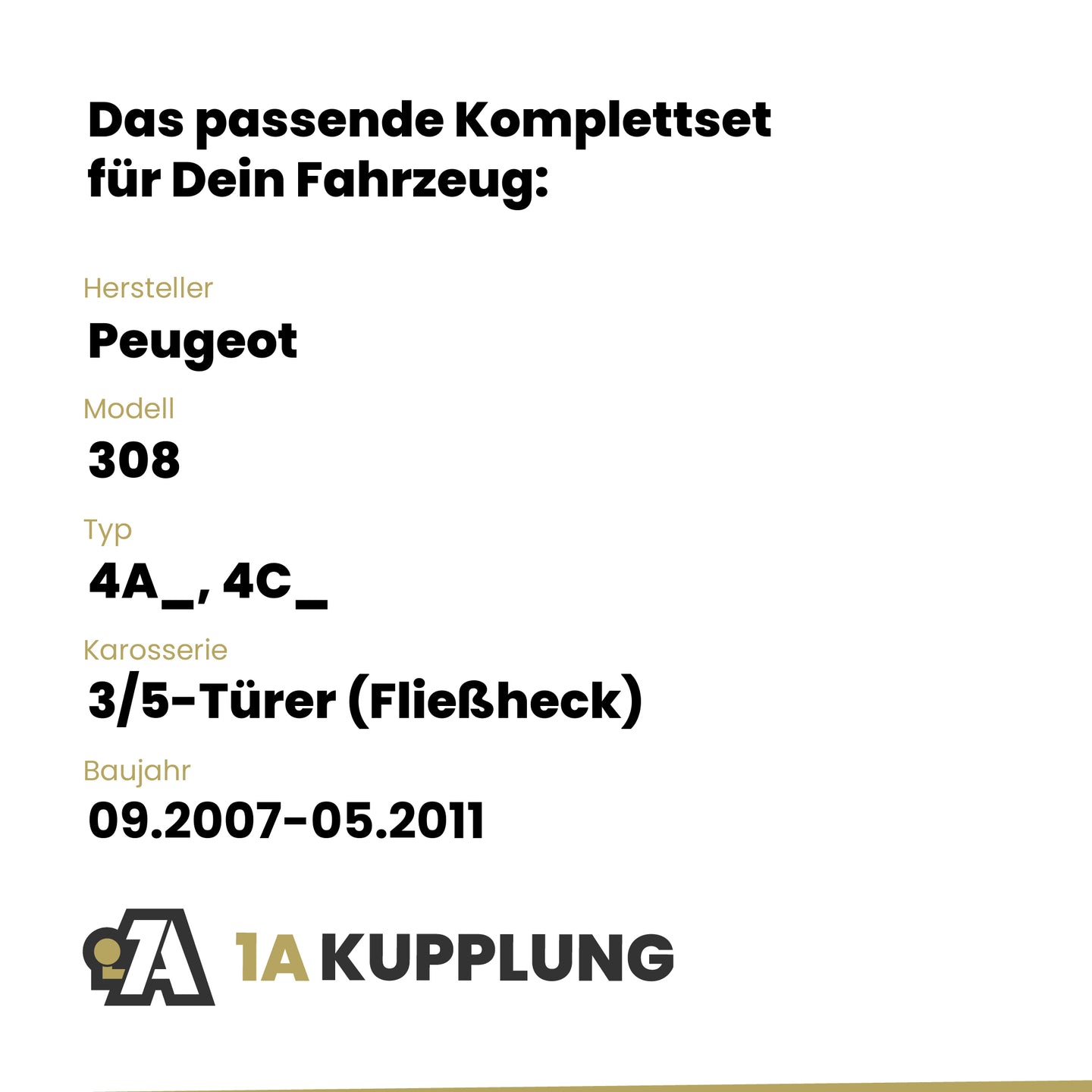 Passt zu Peugeot 308 3/5-Türer (Fließheck), Baujahr 09.2007-10.2008, Typ: 4A_, 4C_