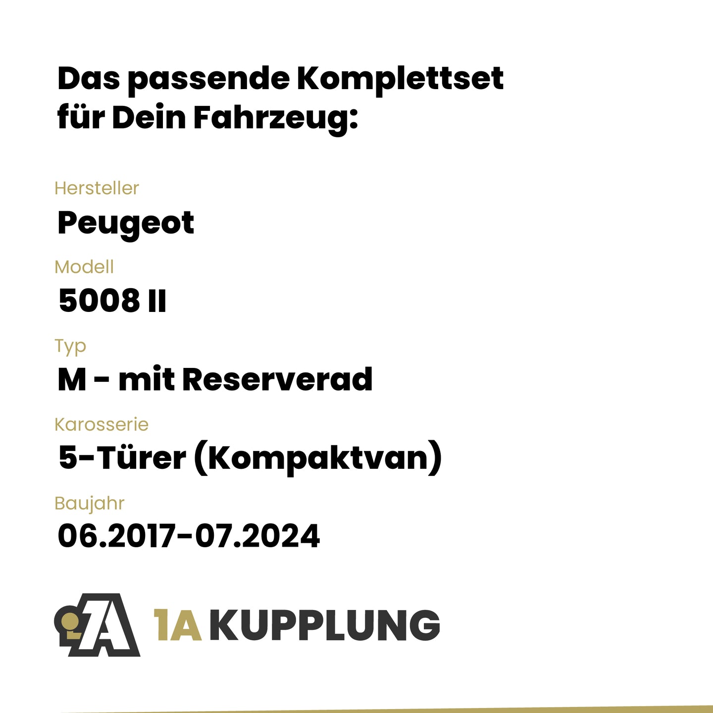 Passt zu Peugeot 5008 II 5-Türer (Kompaktvan), Baujahr 06.2017-07.2024, Typ: M - mit Reserverad