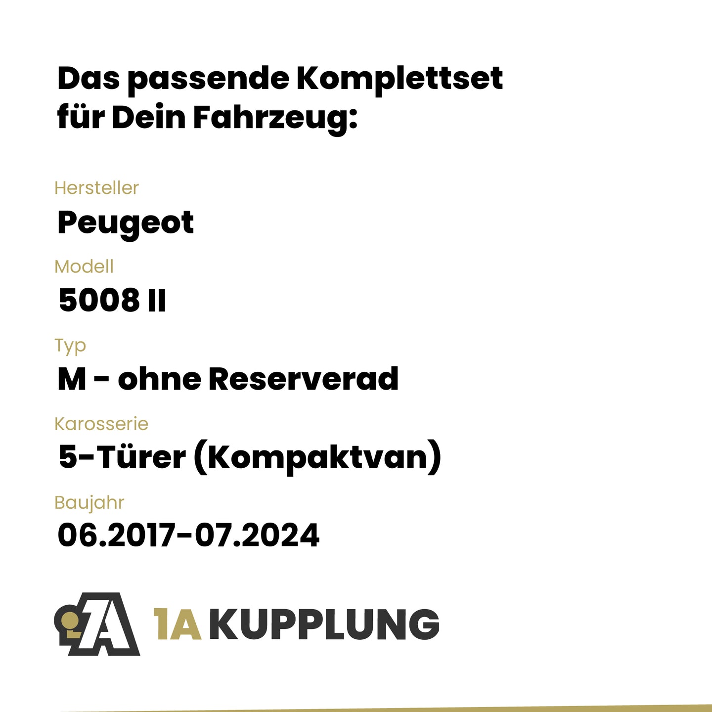 Passt zu Peugeot 5008 II 5-Türer (Kompaktvan), Baujahr 06.2017-07.2024, Typ: M - ohne Reserverad