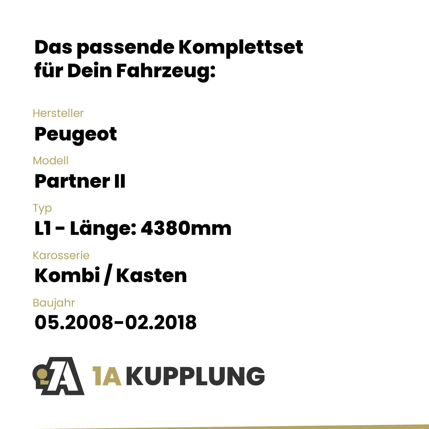 Passt zu Peugeot Partner II Kombi / Kasten, Baujahr 05.2008-02.2018, Typ: L1 - Länge: 4380mm