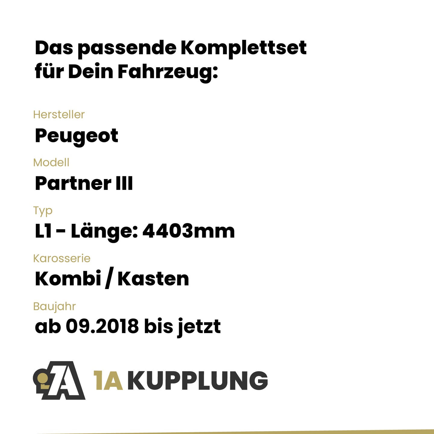 Passt zu Peugeot Partner III Kombi / Kasten, Baujahr ab 09.2018, Typ: L1 - Länge: 4403mm