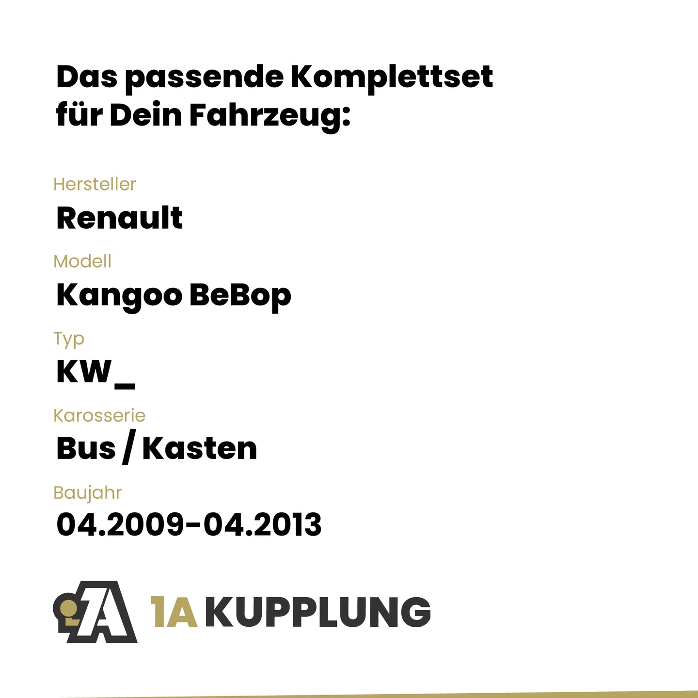 Passt zu Renault Kangoo BeBop Bus / Kasten, Baujahr 04.2009-04.2013, Typ: KW_